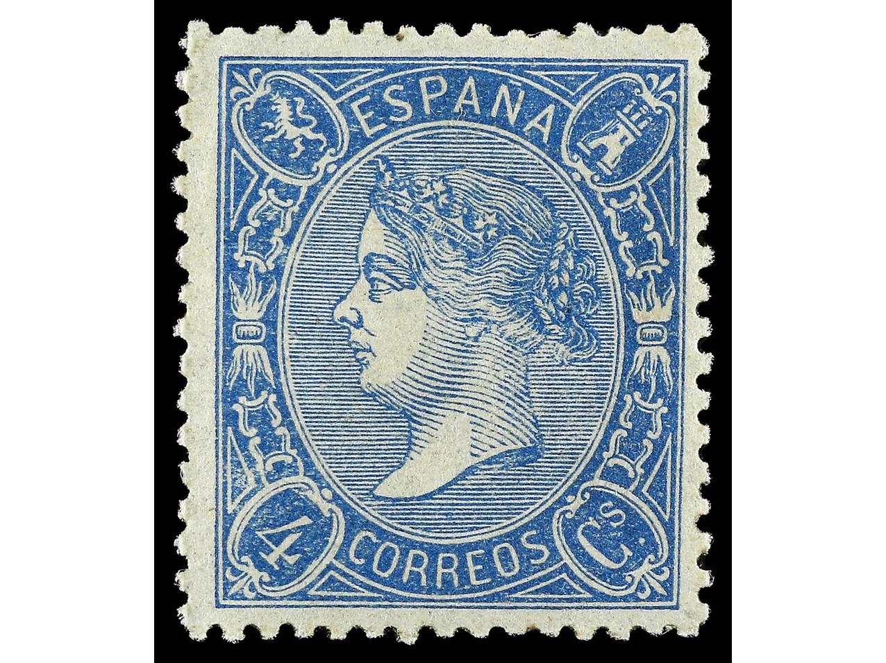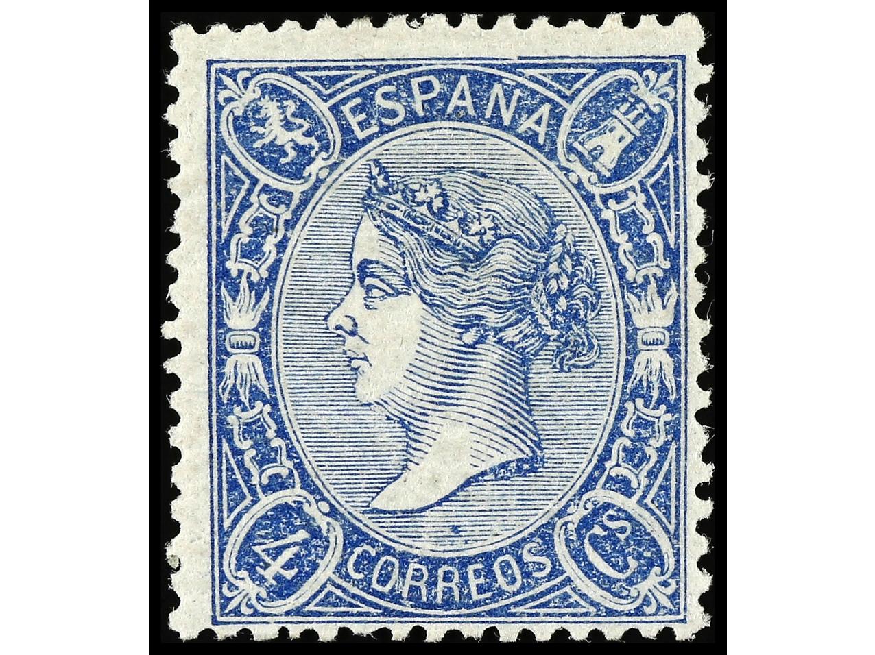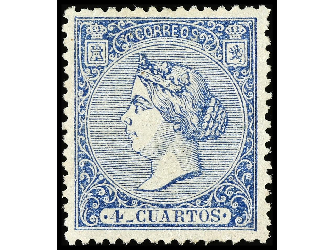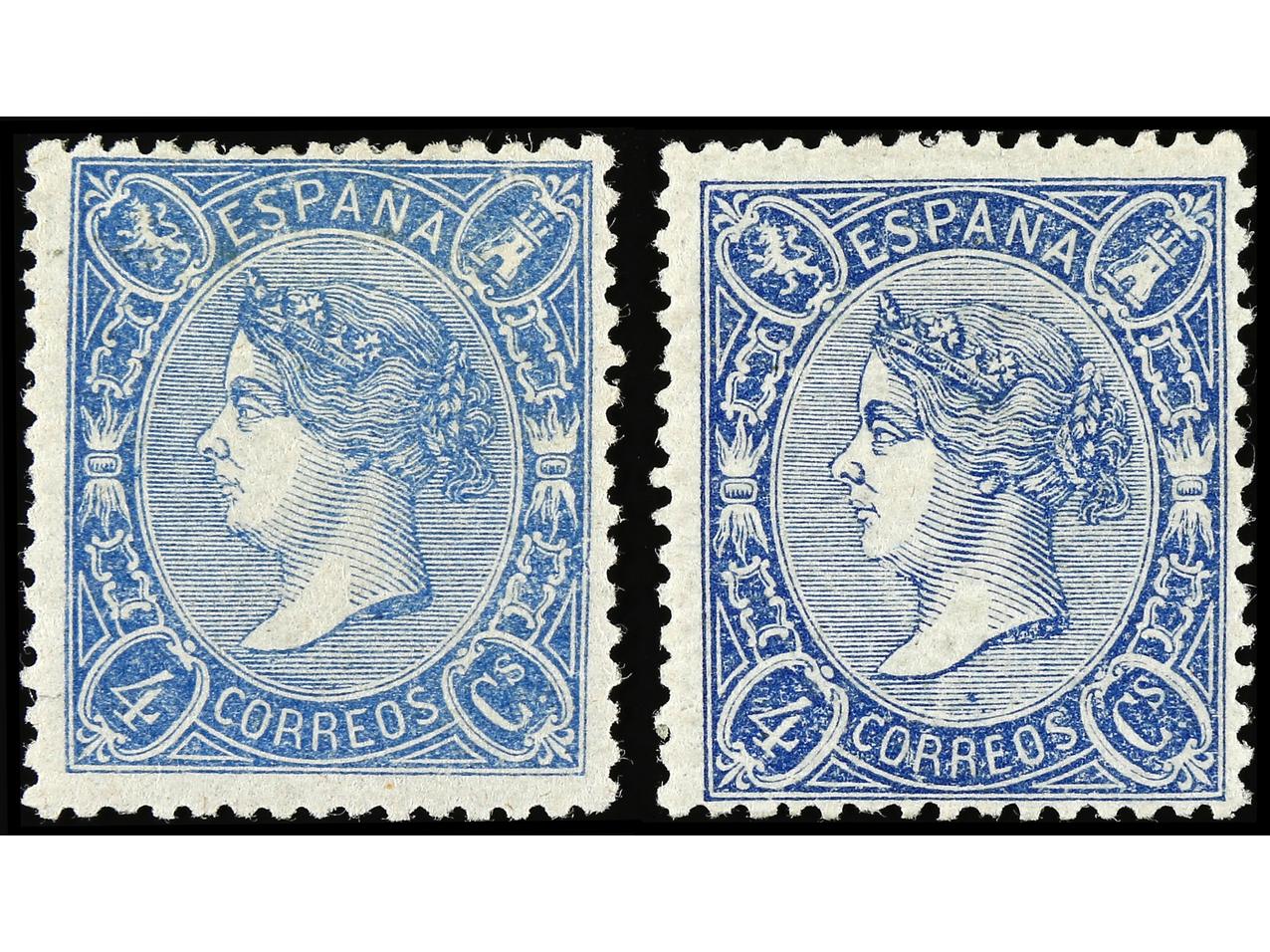 ESPAÑA. 4 cuartos azul, tipos I y II. Bonitos ejemplares con centrado habitual. Ed.75 y 75A. (Image1) (Image2)