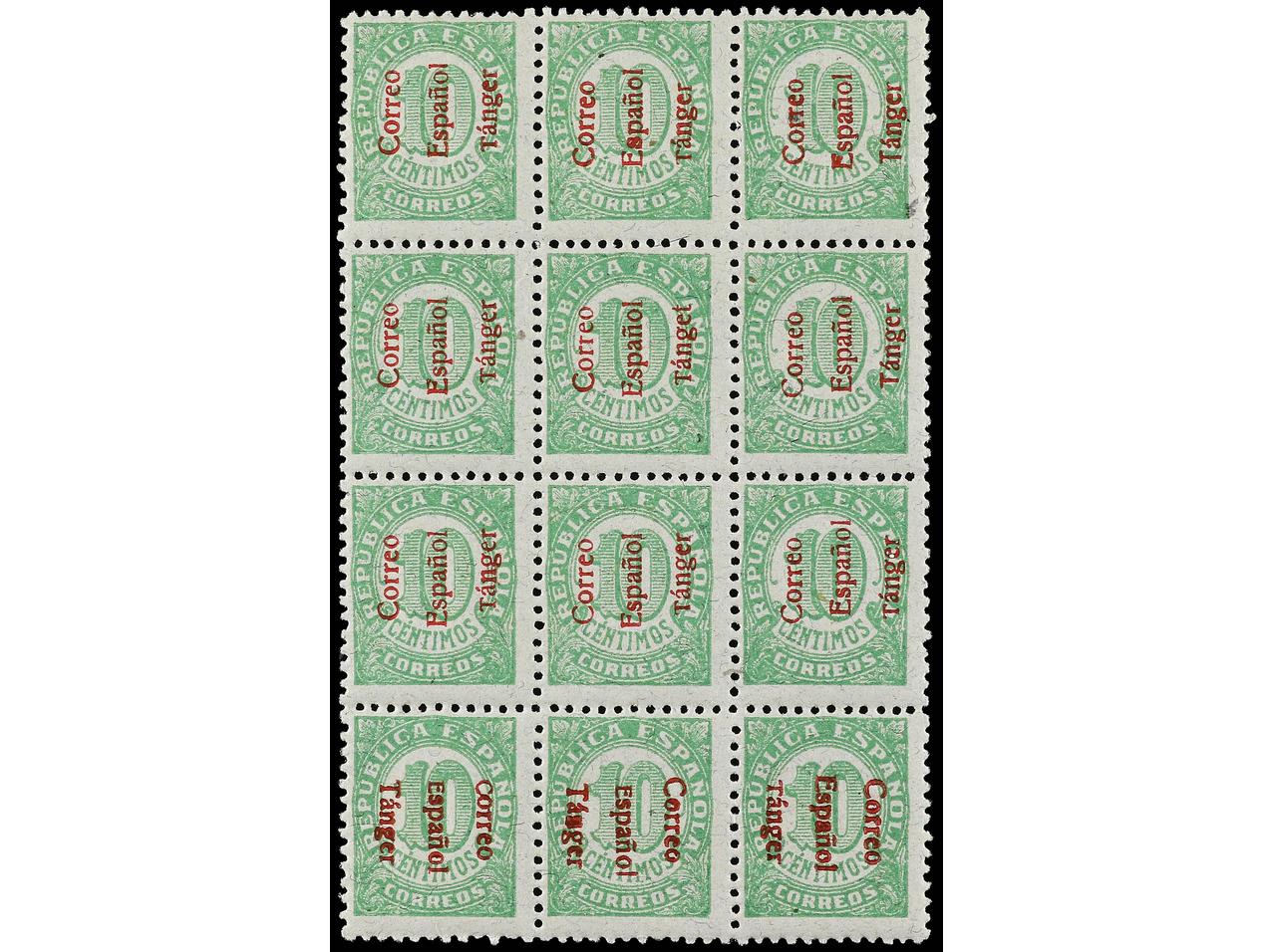 COLONIAS ESPAÑOLAS: TANGER. 5, 10, 15 y 20 cts. Bloques de 12 con las variedades 96/9hvhi (3) y 96/9hea. Ed.96/9 (12). Cat. +680€. (Image1) (Image2)
