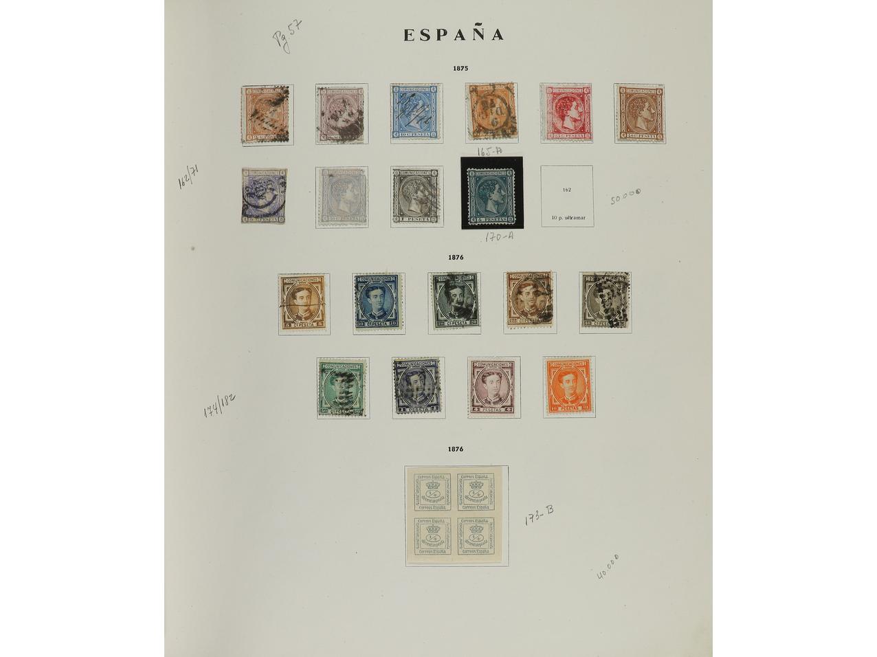 LOTES y COLECCIONES. ESPAÑA. Colección en álbum Philos de 1850 a 1964 muy completa, incluyendo ejemplares de valor. Sellos clásicos mayoría en usado en calidad diversa. A partir de 1926 mayoría en nuevo, incluyendo hojitas bloque. También