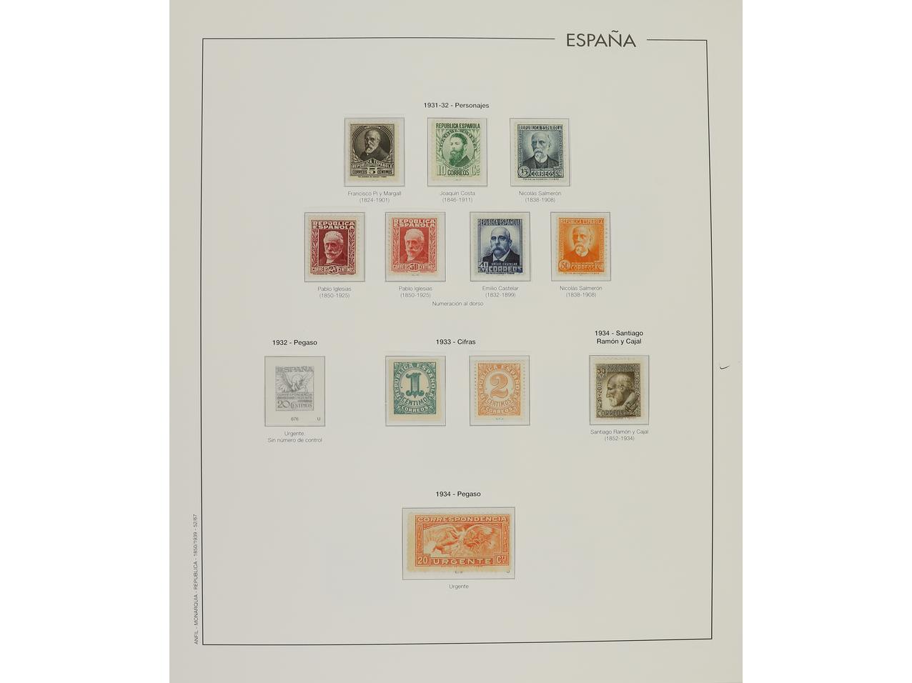 LOTES y COLECCIONES. ESPAÑA. REPÚBLICA. Colección en álbum con protectores de 1931 a 1949. Sellos y HB en nuevo incluyendo series de valor. Aunque hay sellos sin fijasellos se ha valorado todo como con fijasellos. En general buena