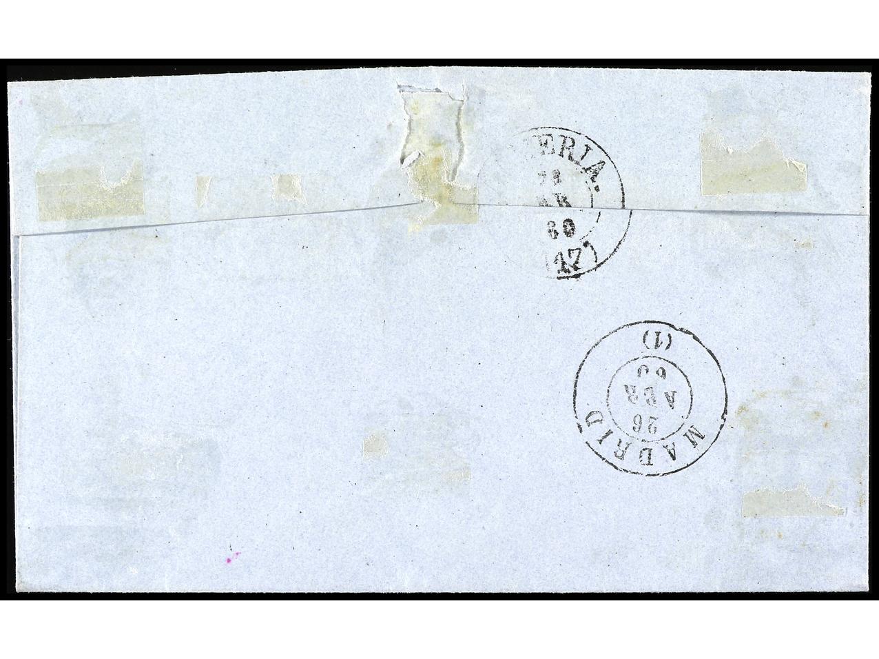 ESPAÑA. 1860. Envuelta a MADRID. Mat. fechador SORBAS (Almería). RARA y de LUJO. Ed.52. (Image1) (Image2)