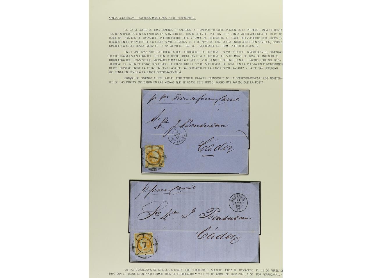 ESPAÑA. 1860. 3 cartas con sello de 4 cuartos amarillo circuladas de SEVILLA a CÁDIZ con indicación manuscrita ´Por Ferrocarril´. Ed.52. (Image1)