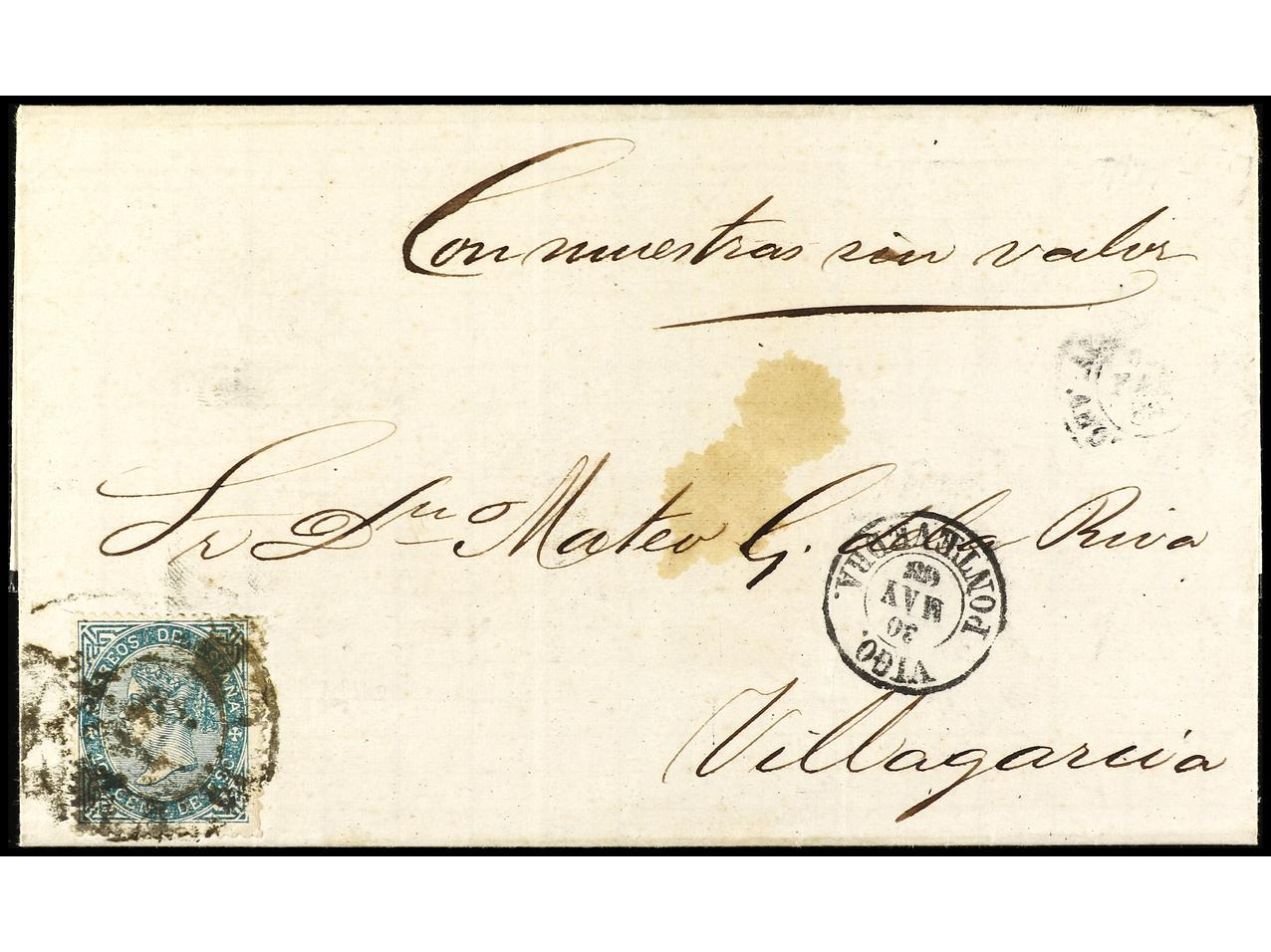 ESPAÑA. 1868. VIGO a VILLAGARCÍA. 10 cents. verde, manuscrito ´Muestras sin valor´ correspondiente a cuatro portes. Ed.91. (Image1) (Image2)