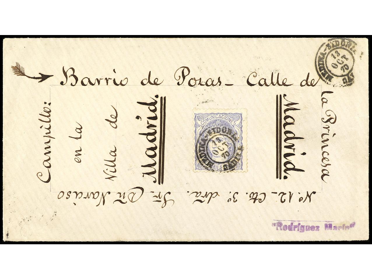 ESPAÑA. 1870. MEDINA SIDONIA a MADRID. Sobre con sello de 50 mils. azul con la dirección ilustrada a mano por el Dr. Thebussem. Ed.107. (Image1) (Image2)
