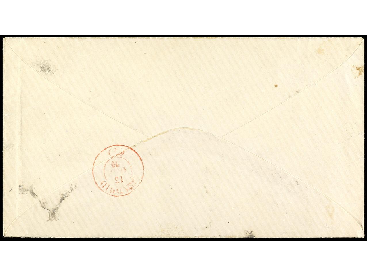ESPAÑA. 1869. HARO a FRANCIA. 12 cuartos naranja, mat. NORTE/AMB. ASC. en rojo. PRECIOSA y RARA. Ed.89. (Image1) (Image2)