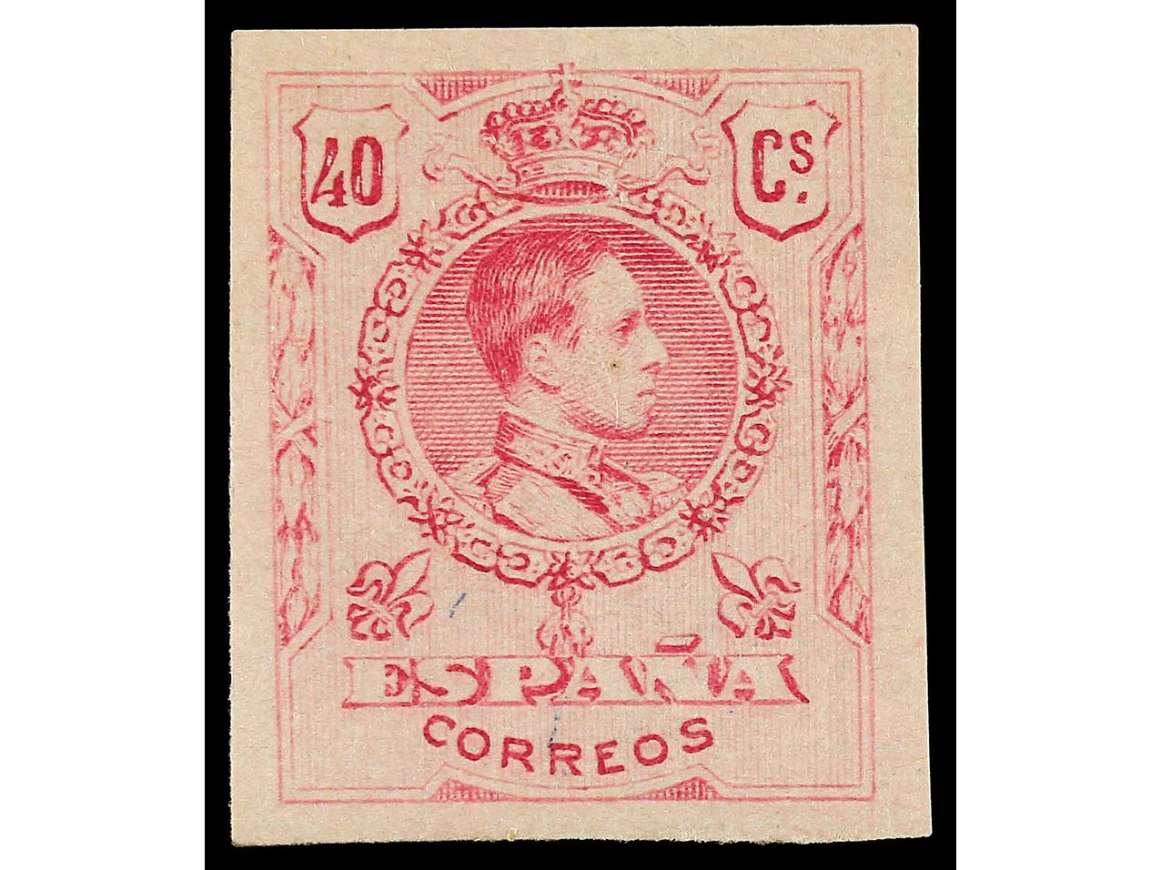 ESPAÑA. 40 cts. rosa SIN DENTAR al dorso numeración auténtica A121,735. MUY RARO. Ed.276s. Cat. 280€. (Image1)