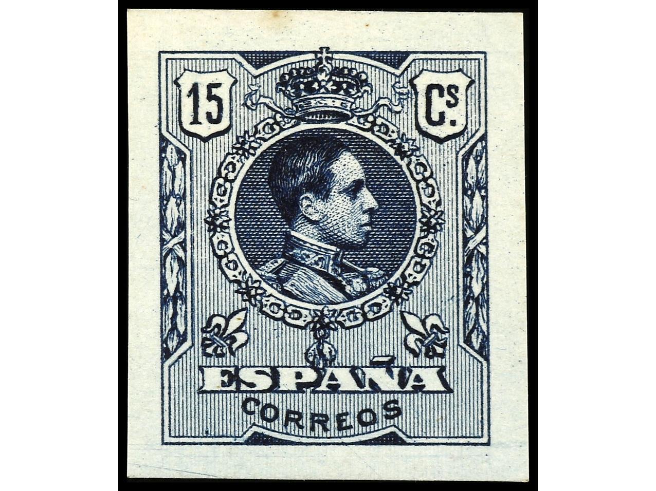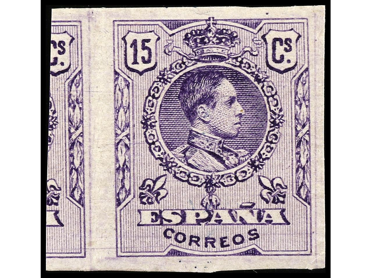 ESPAÑA. 15 cts. violeta SIN DENTAR al dorso numeración auténtica M384,922. MAGNÍFICO y RARO. Ed.270s. Cat. 230€. (Image1)