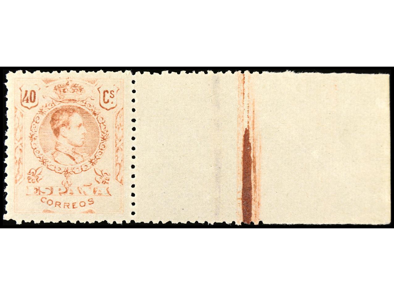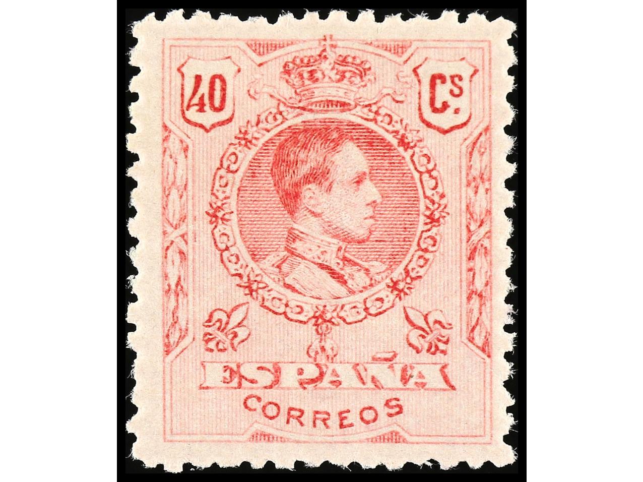 ESPAÑA. 40 cts. salmón. Excepcional centraje, sello borde de hoja. Rarísima en esta calidad. Este sello está catalogado en Gálvez como sello tipo (nº 365) correspondiente a una nueva tirada realizada en 1917-22 con distintos tonos de