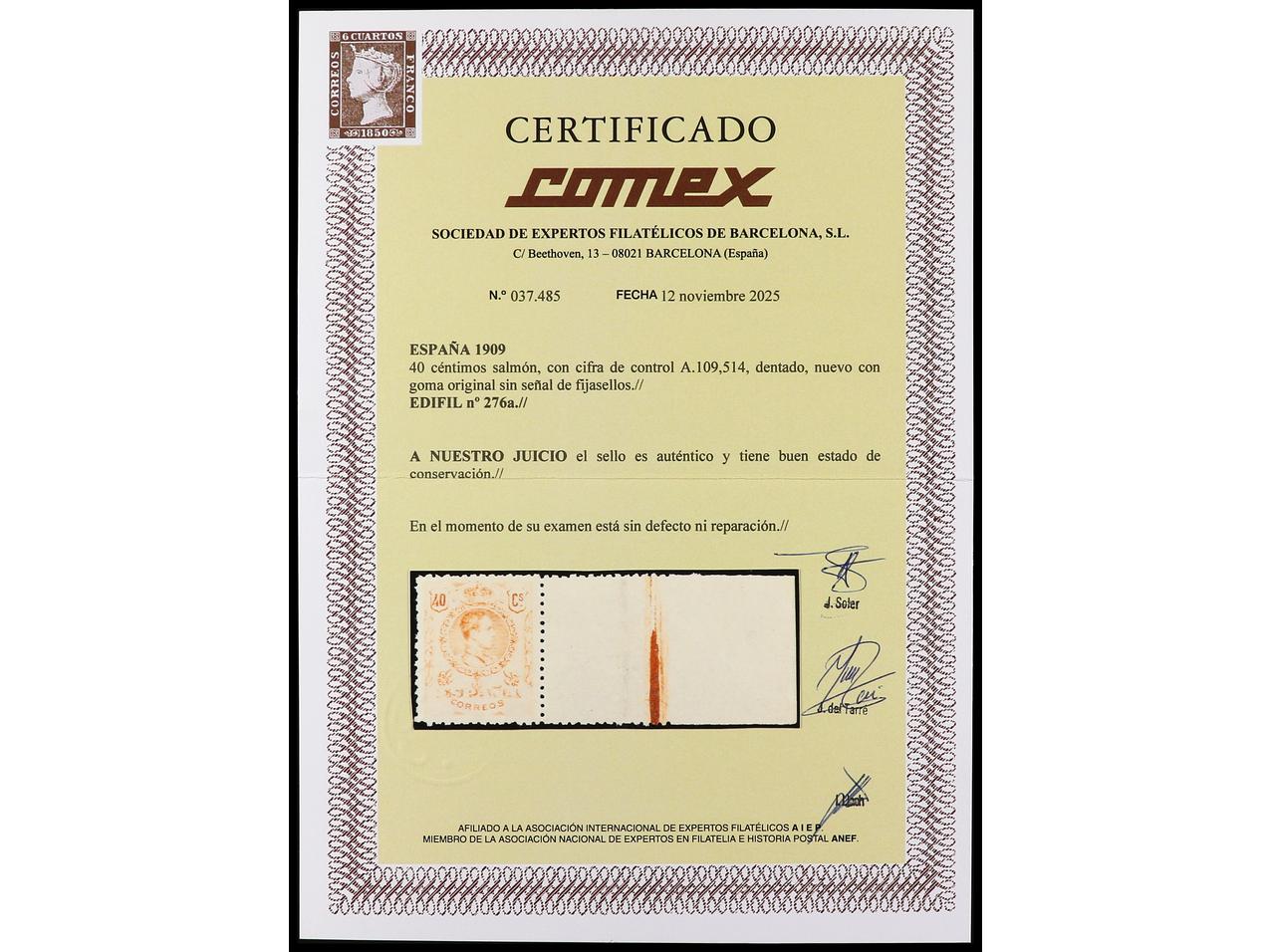 color que la de 1909-12. ESPECTACULAR EJEMPLAR. Cert. COMEX. Ed.276a. Cat. ++255€. (Image1) (Image2)