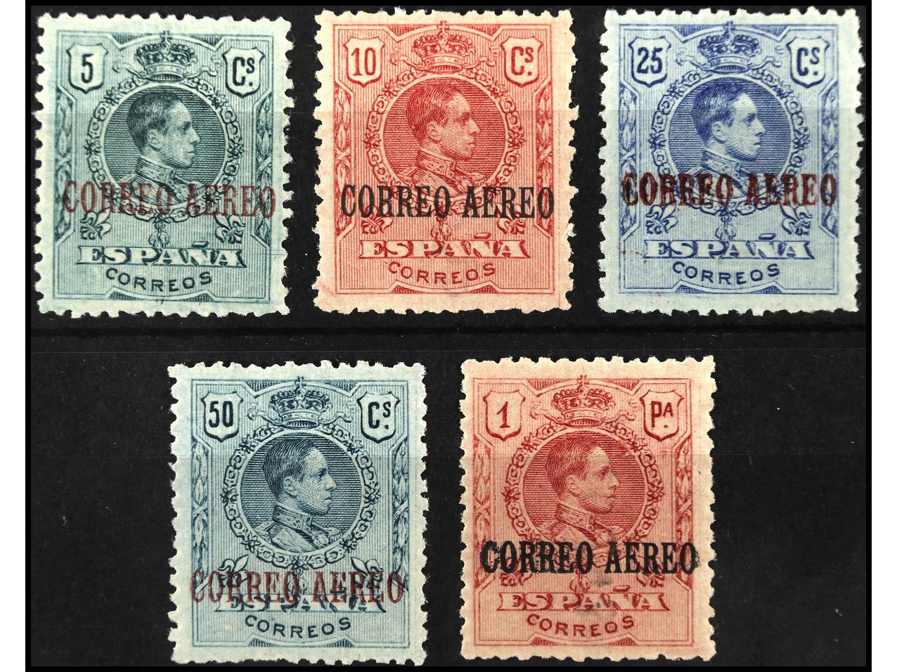 ESPAÑA. SERIE COMPLETA. 5 valores. Bien centrados. Valor clave (1 pta), cert. GRAUS (ejemplar de calidad). Ed.292/6. Cat. 220€. (Image1) (Image2)