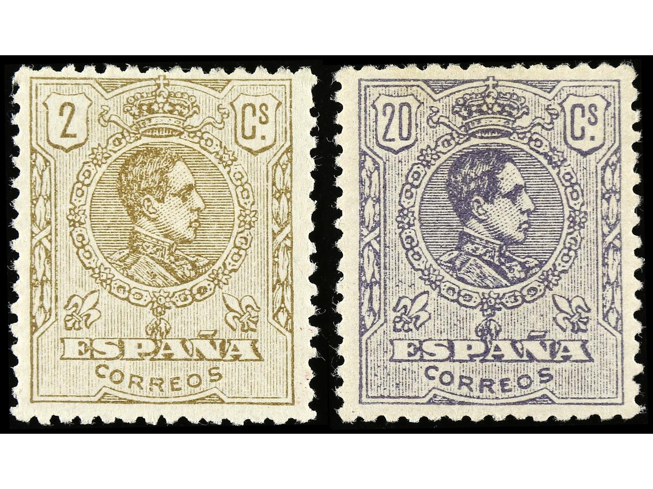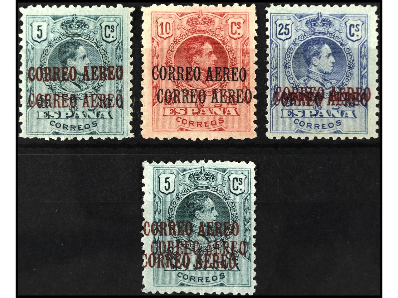 ESPAÑA. 5 cts. a. 25 cts. con HABILITACIÓN DOBLE y 5 cts. con HABILITACIÓN TRIPLE. Ed.292/4hh y 292hhh. Cat. +449€. (Image1) (Image2)