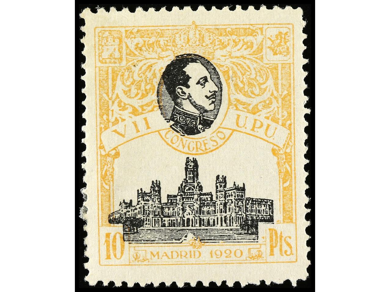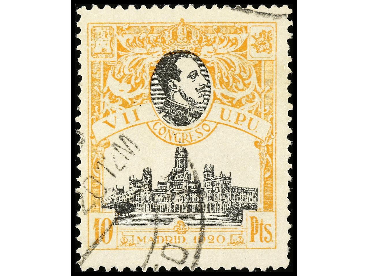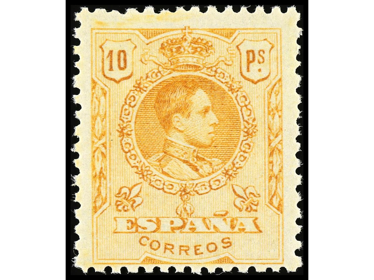 ESPAÑA. 10 pts. naranja. Numeración ceros. LUJO. RARO en esta calidad. Ed.280. (Image1)