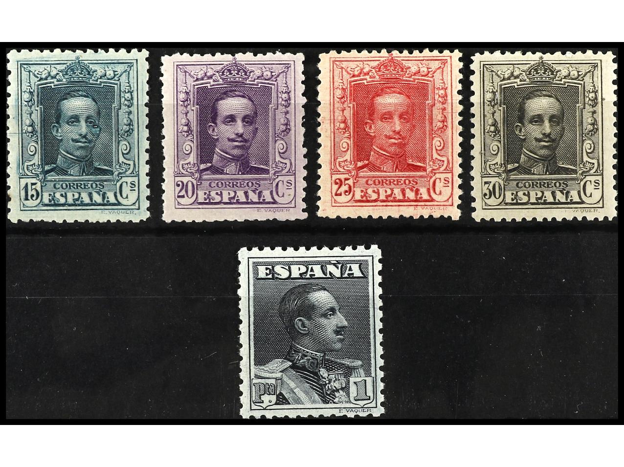 ESPAÑA. 15 cts., 20 cts., 25 cts., 30 cts. y 1 pta. Excelentes centrajes. LUJO. Ed.315/318 y 321. (Image1)
