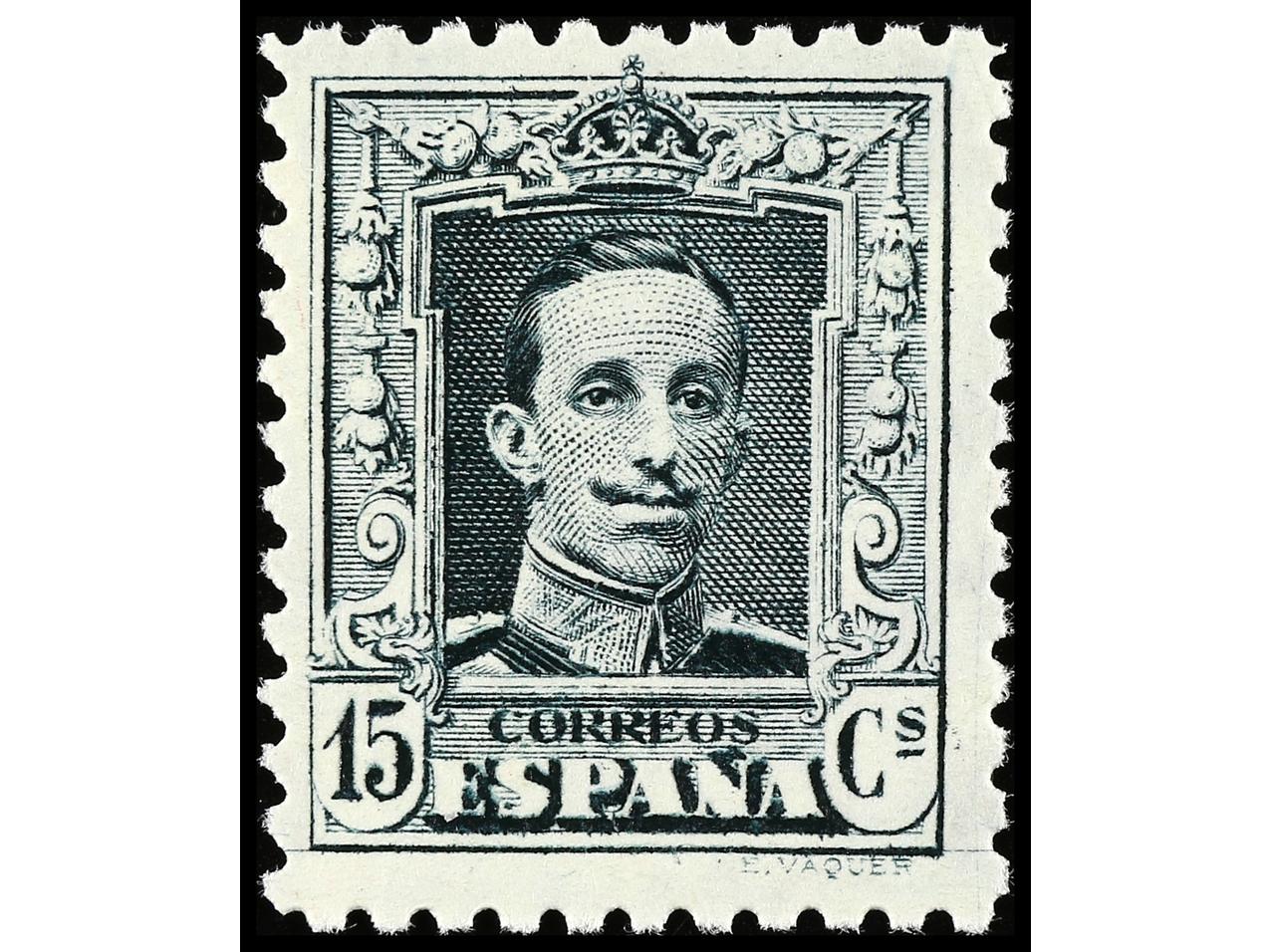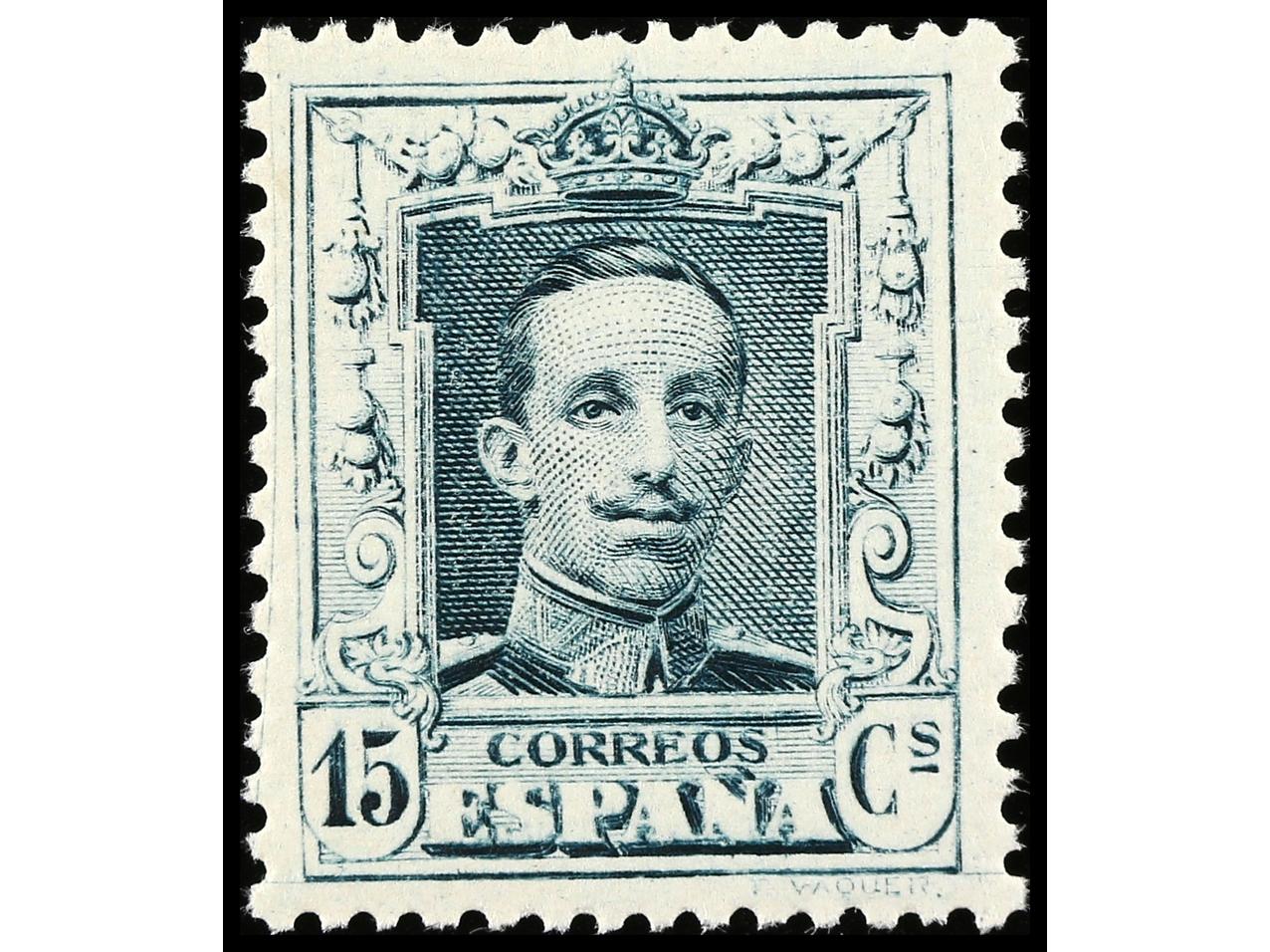 ESPAÑA. 15 cts. gris azulado. Tipo II. LUJO. RARO. Ed.315B. (Image1)