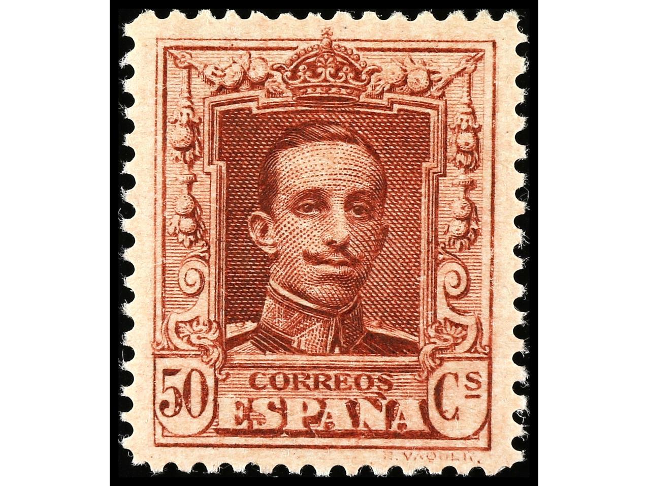 ESPAÑA. 50 cts. castaño rojizo. ERROR DE COLOR. Ed.320ec. Cat. +87€. (Image1)