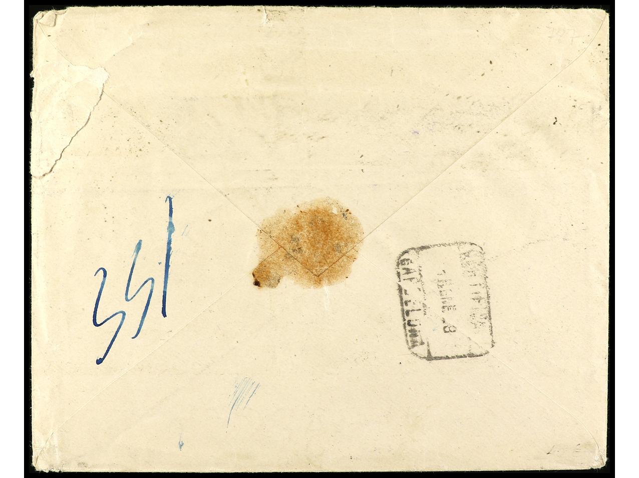 ESPAÑA. 1928. ANTEQUERA a BARCELONA. 1 pta. gris SIN DENTAR y 2 cts. oliva, tira de tres. Carta certificada, raro franqueo en carta, al dorso llegada. Ed.321s, 310 (3). (Image1) (Image2)