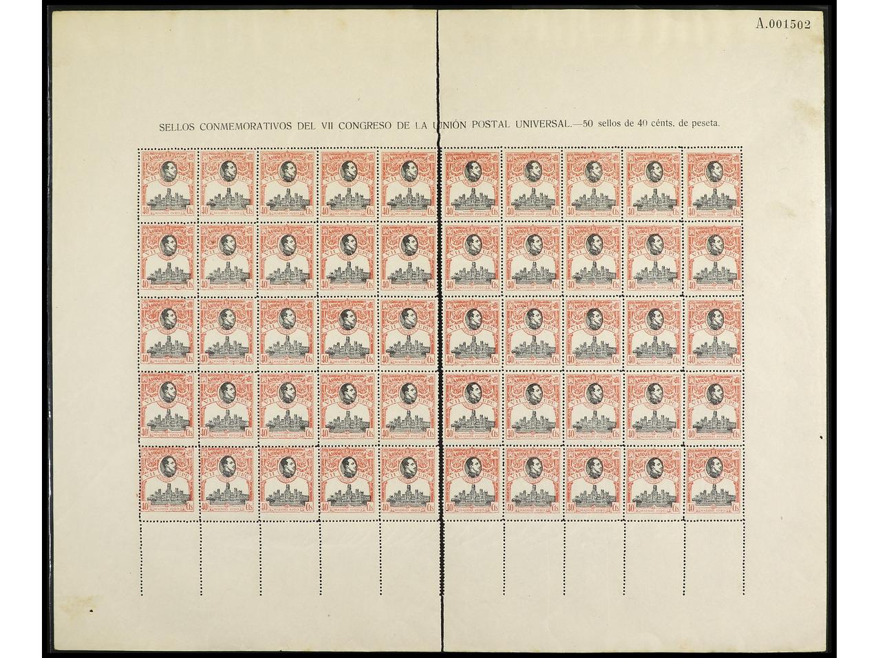 ESPAÑA. 40 cts. rosa. Hoja de 50 sellos con bastantes ejemplares muy bien centrados. Ed.305. Cat. 4.900€. (Image1)