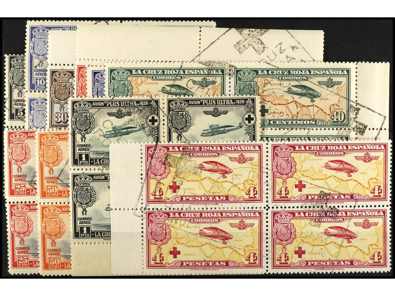 ESPAÑA. SERIE COMPLETA en bloques de cuatro. Raro en usado. Ed.339/48. Cat. +520€. (Image1) (Image2)
