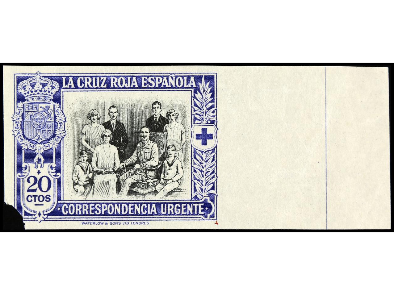 ESPAÑA. SERIE COMPLETA, CAMBIOS DE COLOR con los colores adoptados para las Colonias Españolas sin la habilitación, sellos sin dentar y con taladro angular, procedentes de las hojas de trabajo de la imprenta con algunas correcciones antes