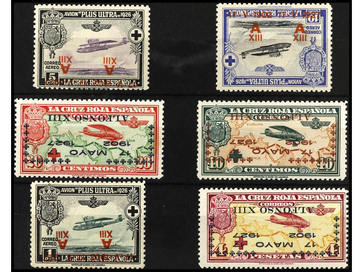 ESPAÑA. JUEGO COMPLETO. 6 valores con HABILITACIÓN INVERTIDA. RAROS. Ed.363/72hi. Cat. +640€. (Image1) (Image2)