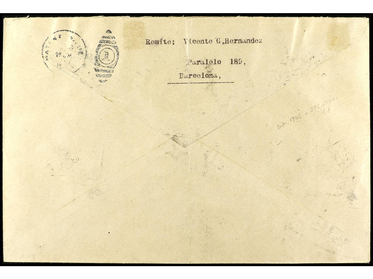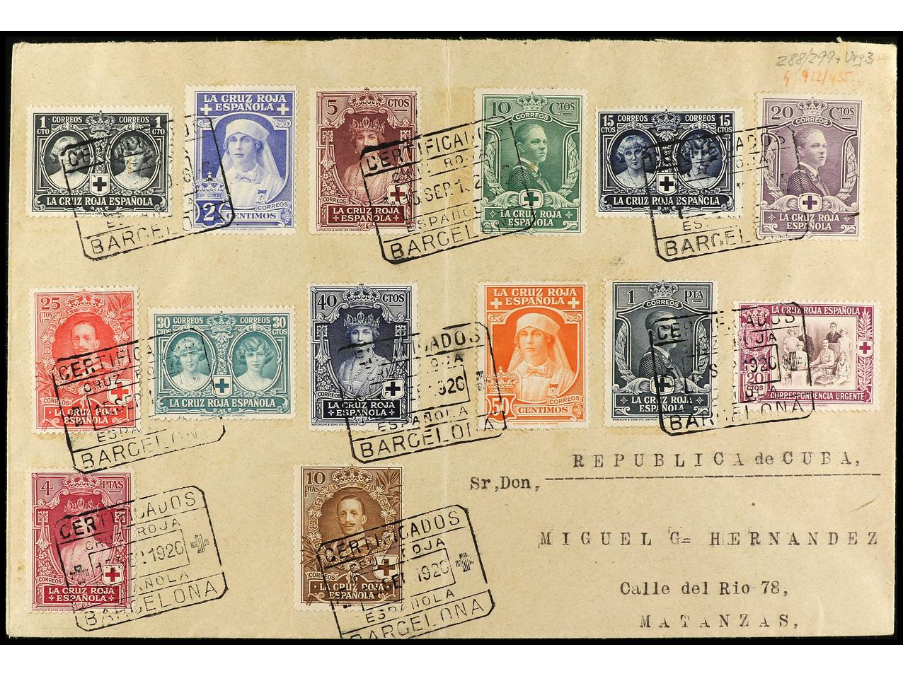ESPAÑA. 1926. BARCELONA a CUBA. Serie completa en carta circulada, rara al exterior, al dorso llegada. (Image1) (Image2)