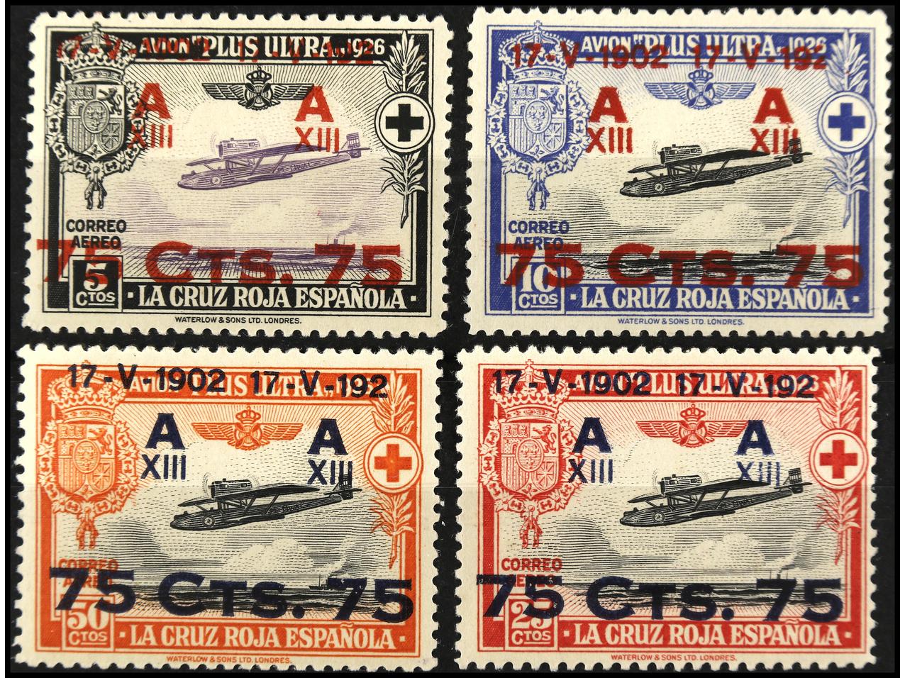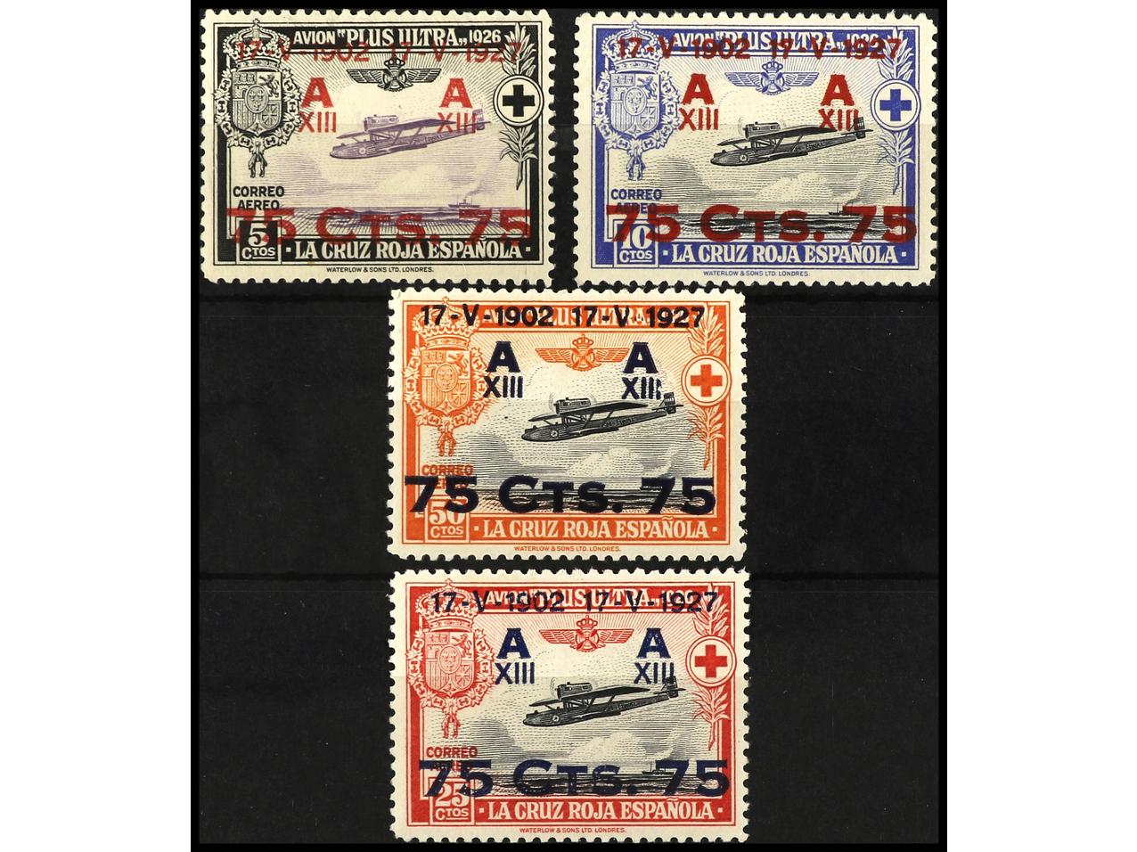 ESPAÑA. SERIE COMPLETA. 4 valores. Falta el ´7´ de ´1927´. LUJO. Ed.388/91t. Cat. +295€. (Image1) (Image2)