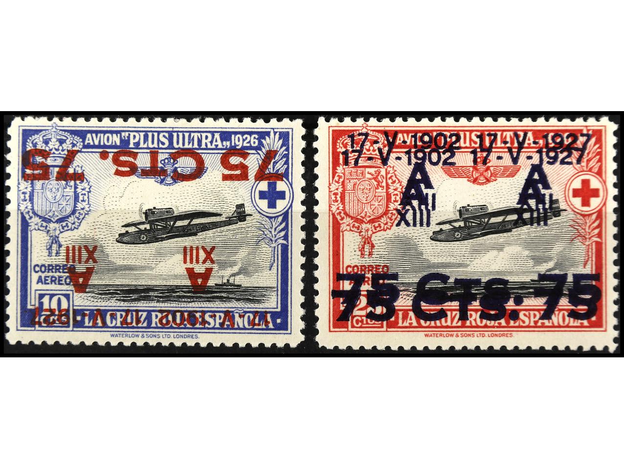 ESPAÑA. 75 cts. s. 10 cts. HABILITACIÓN INVERTIDA y 70 cts. s. 25 cts. DOBLE HABILITACIÓN. Ed.389hi, 390hh. Cat. +203€. (Image1) (Image2)