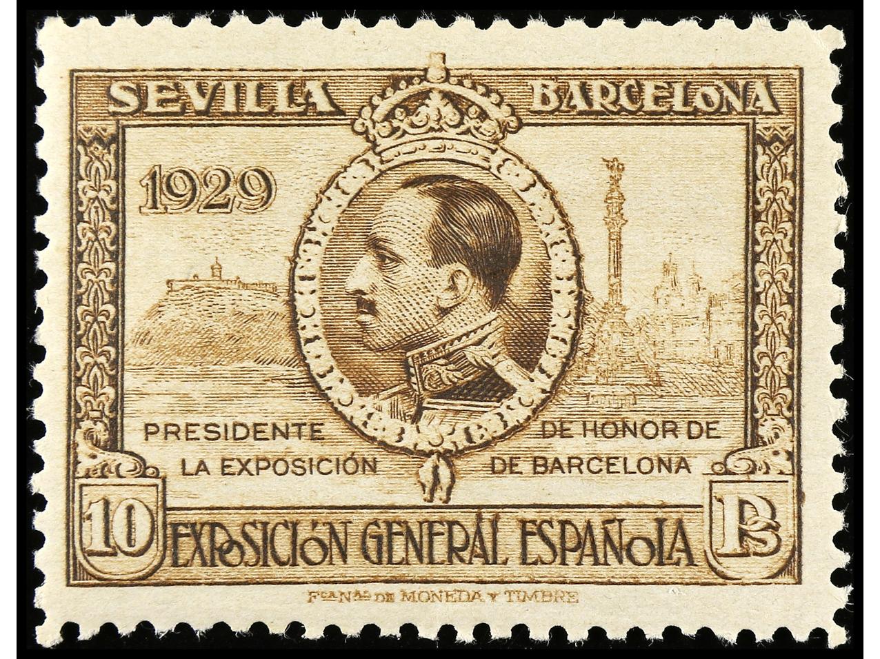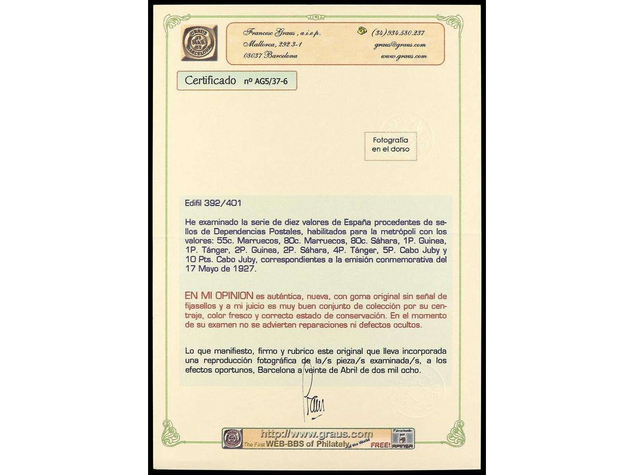 ESPAÑA. SERIE COMPLETA. 10 valores. 1 pta. s. 10 pts. (Guinea). Ed. 395 dentado irregular. Cert. GRAUS. Ed.392/401. Cat. 1.600€. (Image1) (Image2)