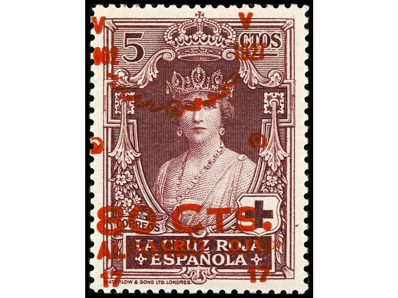 ESPAÑA. 80 c. s. 5 c. Variedad HABILITACIÓN DESPLAZADA. Ed.382hd. Cat. 225€. (Image1)