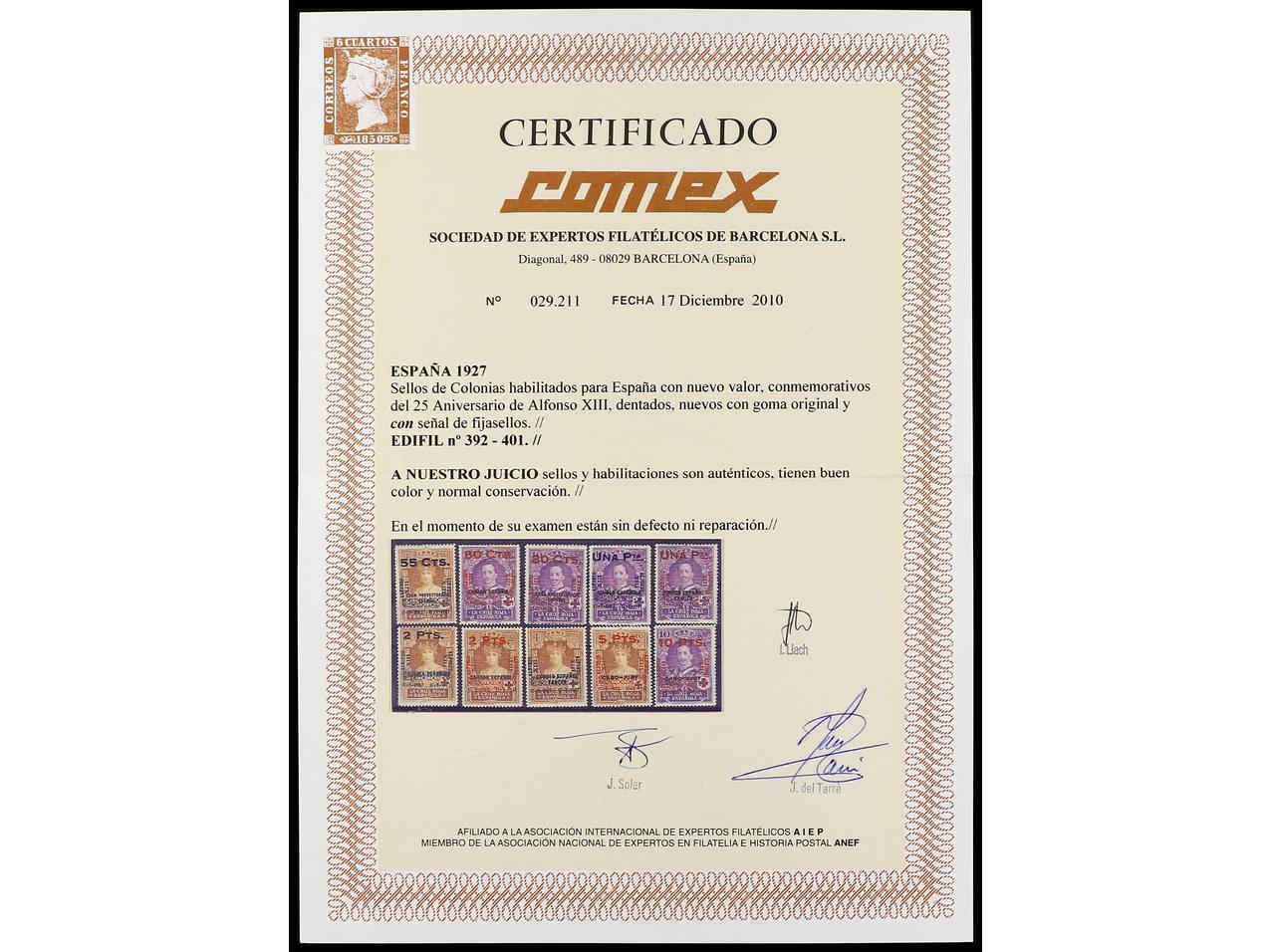 ESPAÑA. SERIE COMPLETA, 10 valores. Cert. COMEX. Ed.392/401. Cat. 900€. (Image1) (Image2)