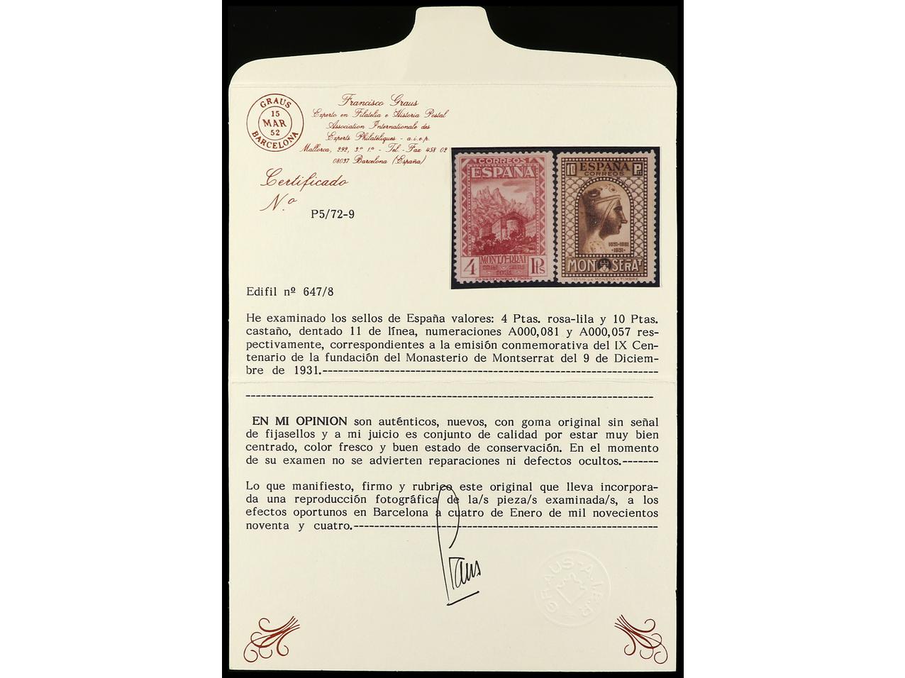 ESPAÑA. SERIE COMPLETA. 14 valores. LUJO. RARA en esta calidad 4 y 10 pts. cert. GRAUS (conjunto de calidad) y SORO. Ed.636/49. Cat. 4.000€.