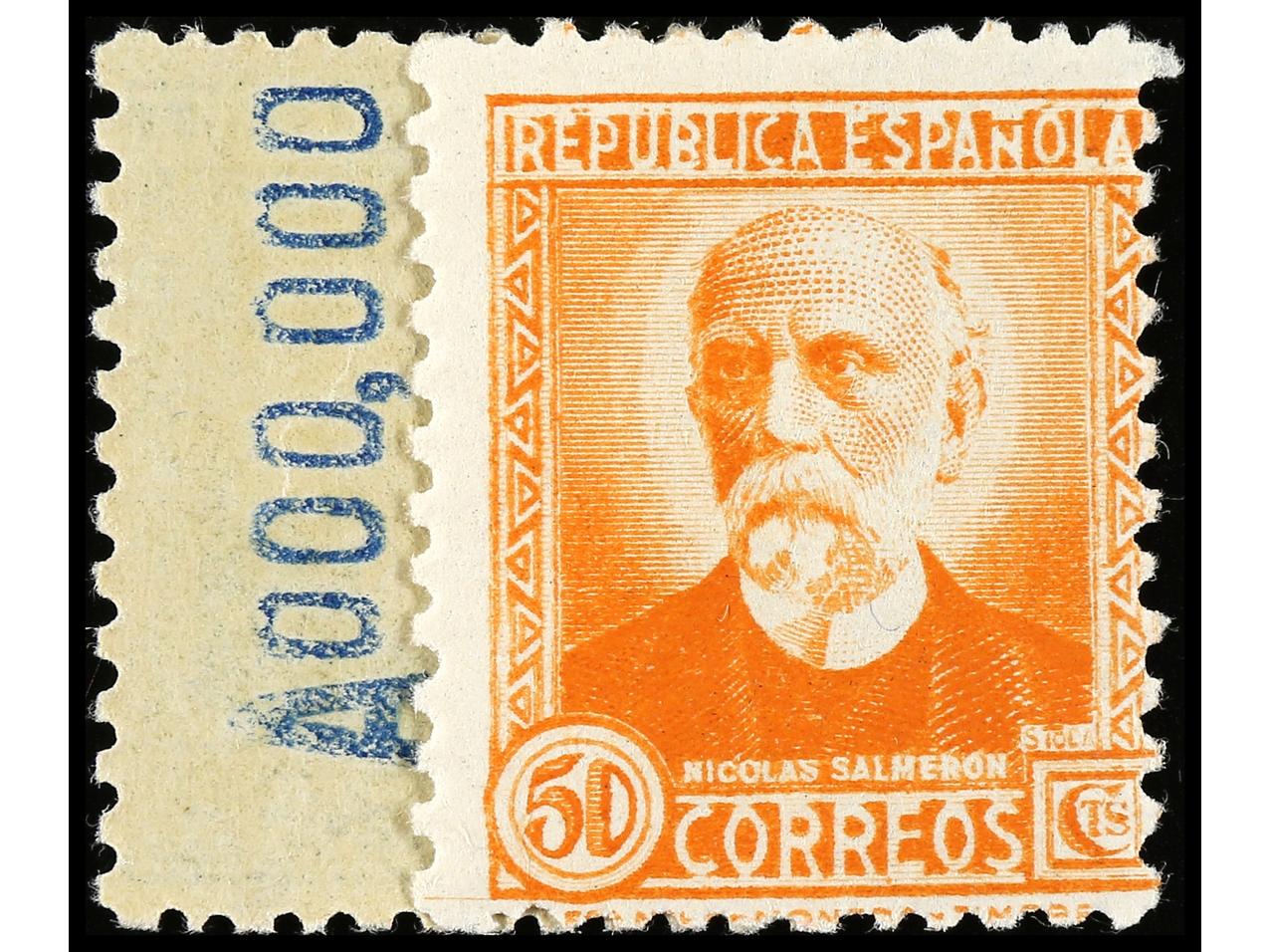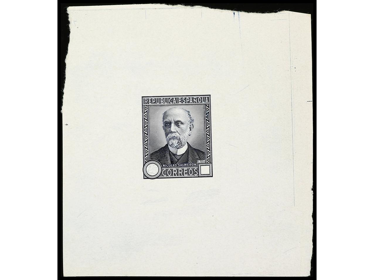 ESPAÑA. 1931. N. SALMERÓN. PRUEBA DE PUNZÓN sin facial en color azul negro (Gálvez 3016) sobre papel estucado, sin pie de imprenta. RARA. (Image1)