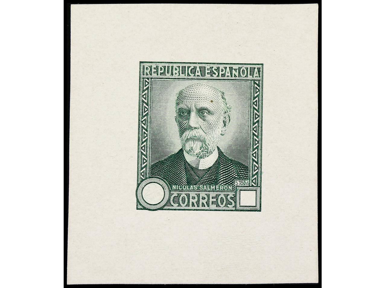 ESPAÑA. 1931. N. SALMERÓN. PRUEBA DE PUNZÓN sin facial en color verde (Gálvez 3020) sobre papel estucado, sin pie de imprenta. RARA. (Image1)