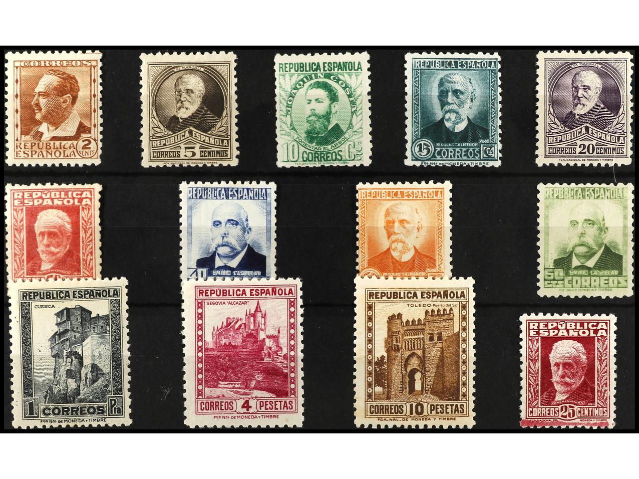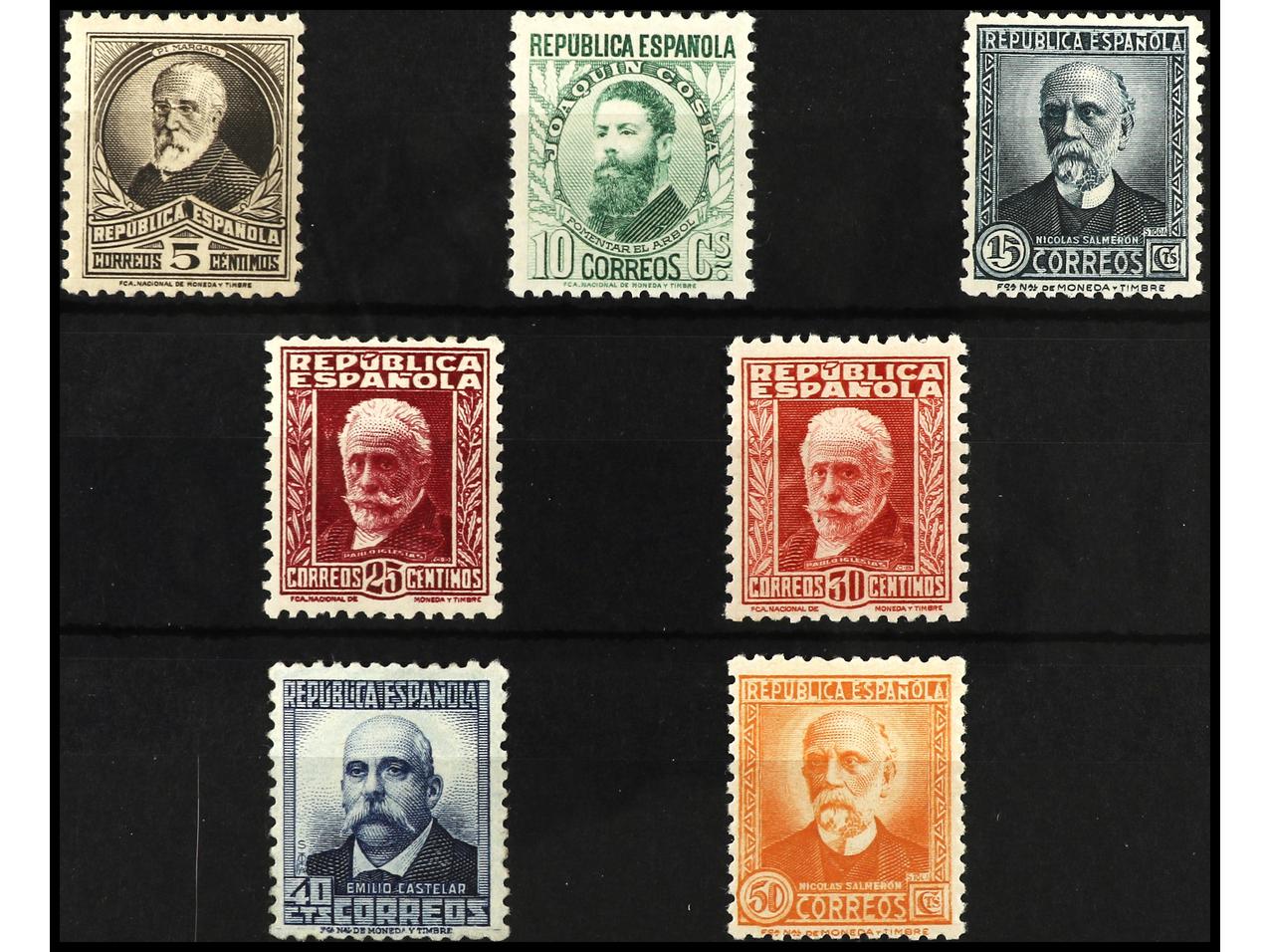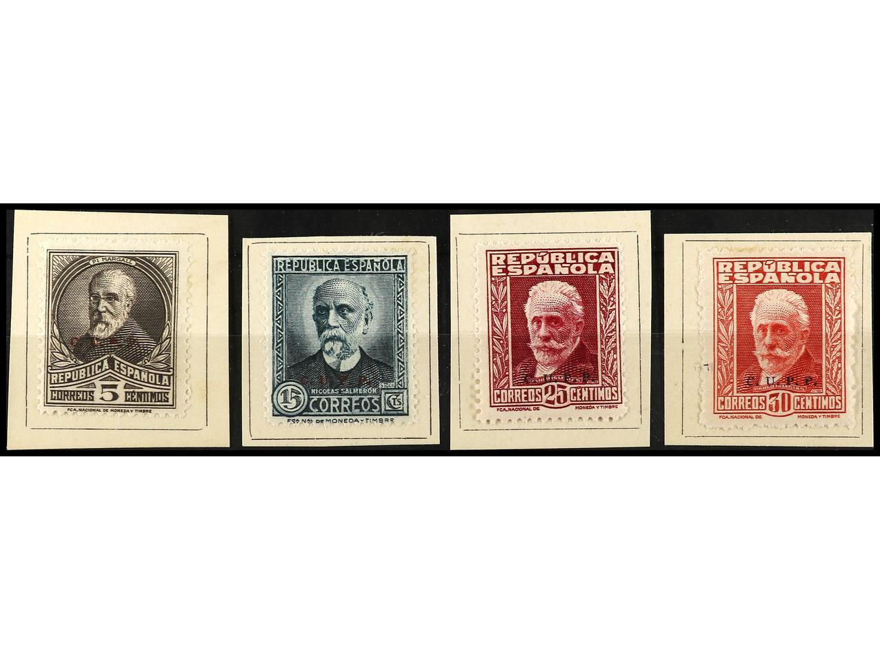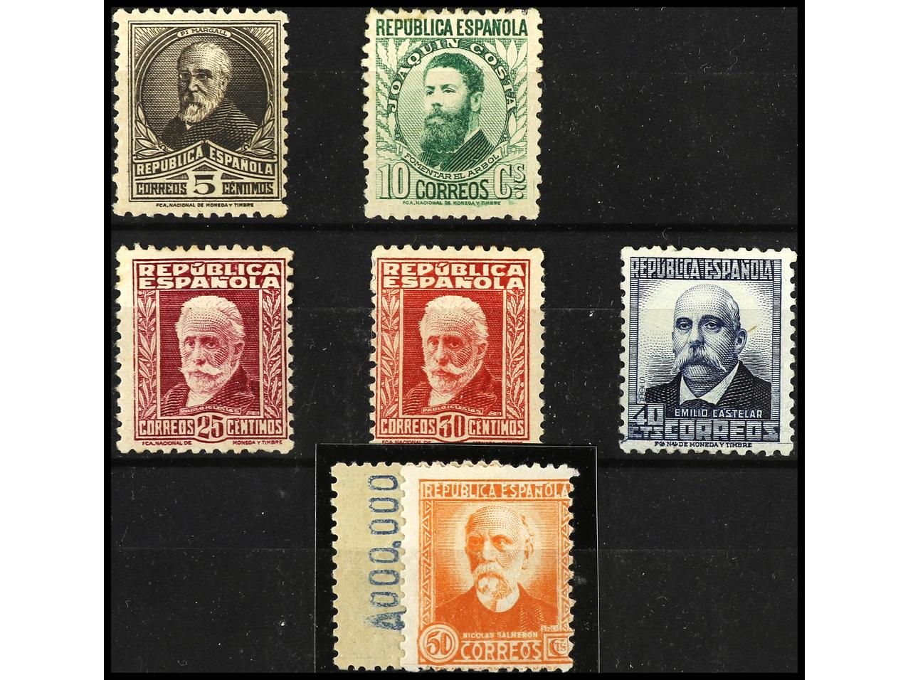 ESPAÑA. 1931-32. E. CASTELAR y N. SALMERÓN. Colección estudio formado por sellos, variedades, cartas, patrióticos, etc. Muchas raras incluyendo cartas autógrafas. RARO CONJUNTO muy difícil de reunir. Montado en hojas de exposición. Ver