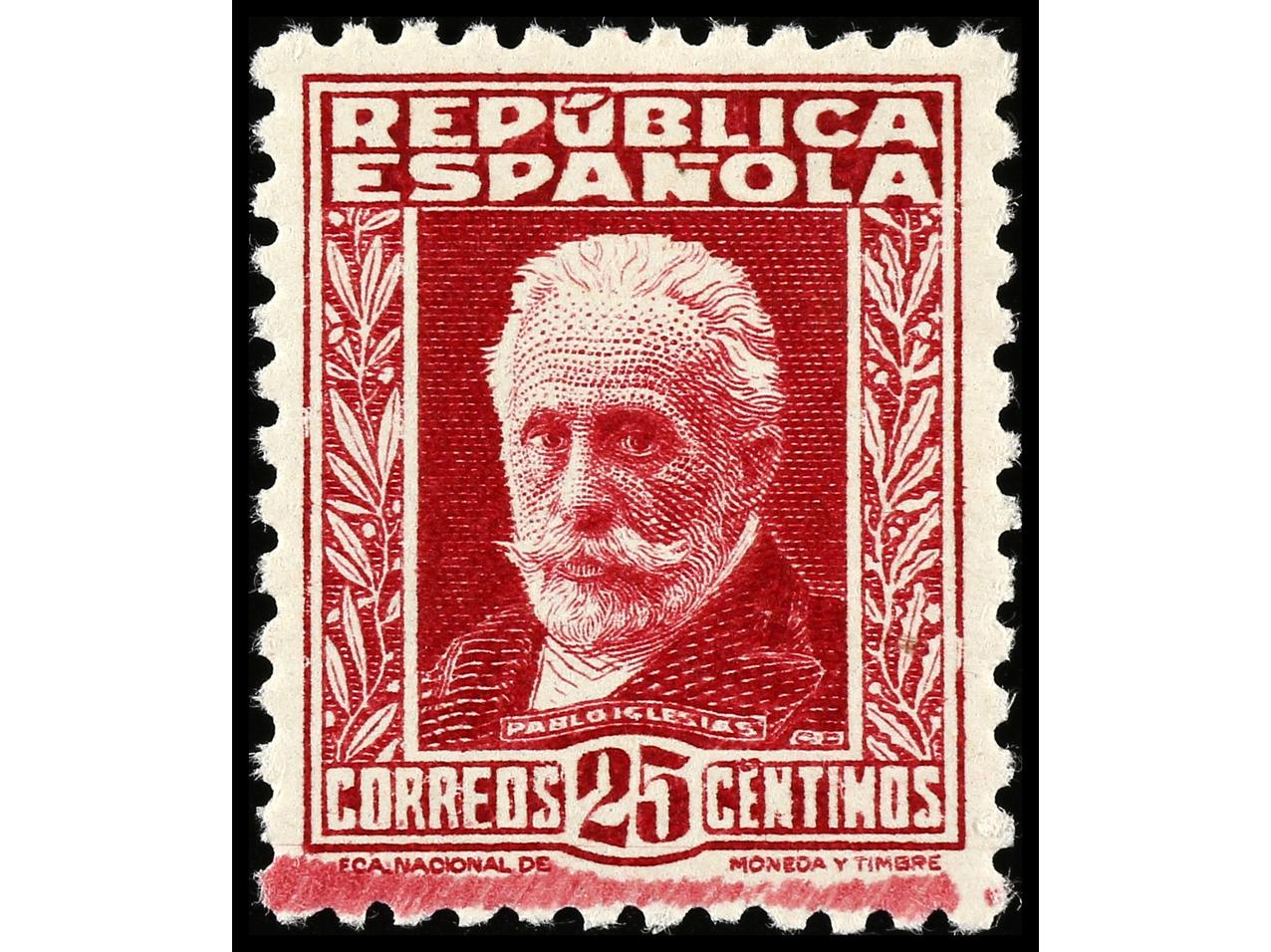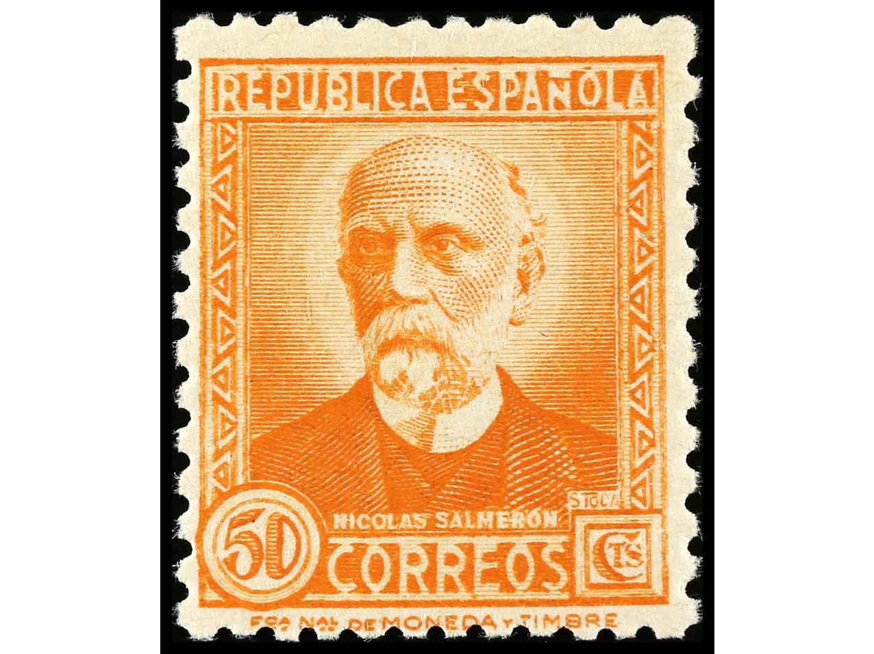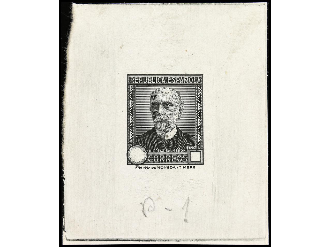 ESPAÑA. 1931. N. SALMERÓN. PRUEBA DE PUNZÓN sin facial en color negro (Gálvez 3015) sobre papel estucado, con pie de imprenta. RARA. (Image1)