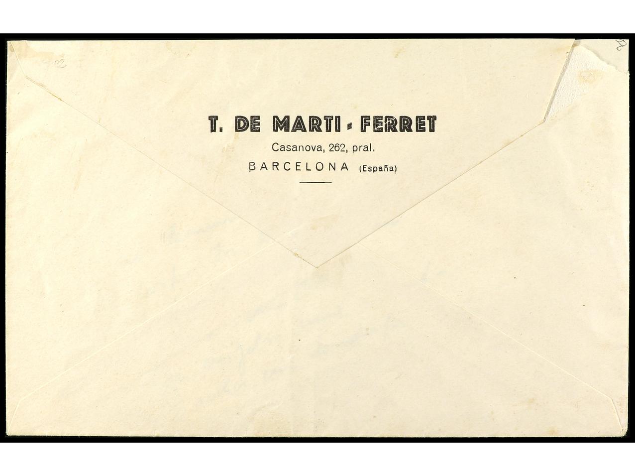 ESPAÑA. 1931. BARCELONA a ALEMANIA. Serie completa en carta circulada, al dorso llegada. Ed.650/54. (Image1) (Image2)