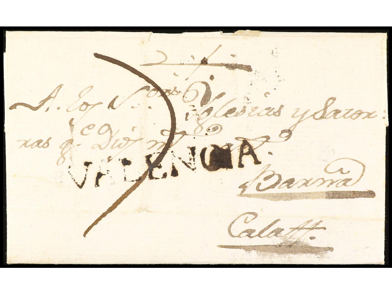 ESPAÑA: PREFILATELIA. 1789. LIRIA. Marca VALENCIA (nº 2) en negro. MAGNÍFICA. (Image1) (Image2)