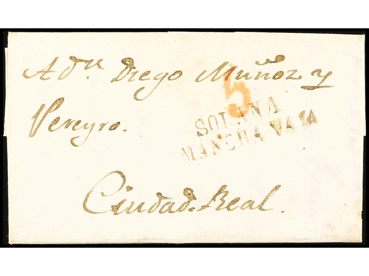 ESPAÑA: PREFILATELIA. (1820 CA.). SOLANA. Marca SOLANA/MANCHA VAJA (nº 3) en negro. MAGNÍFICA. (Image1) (Image2)