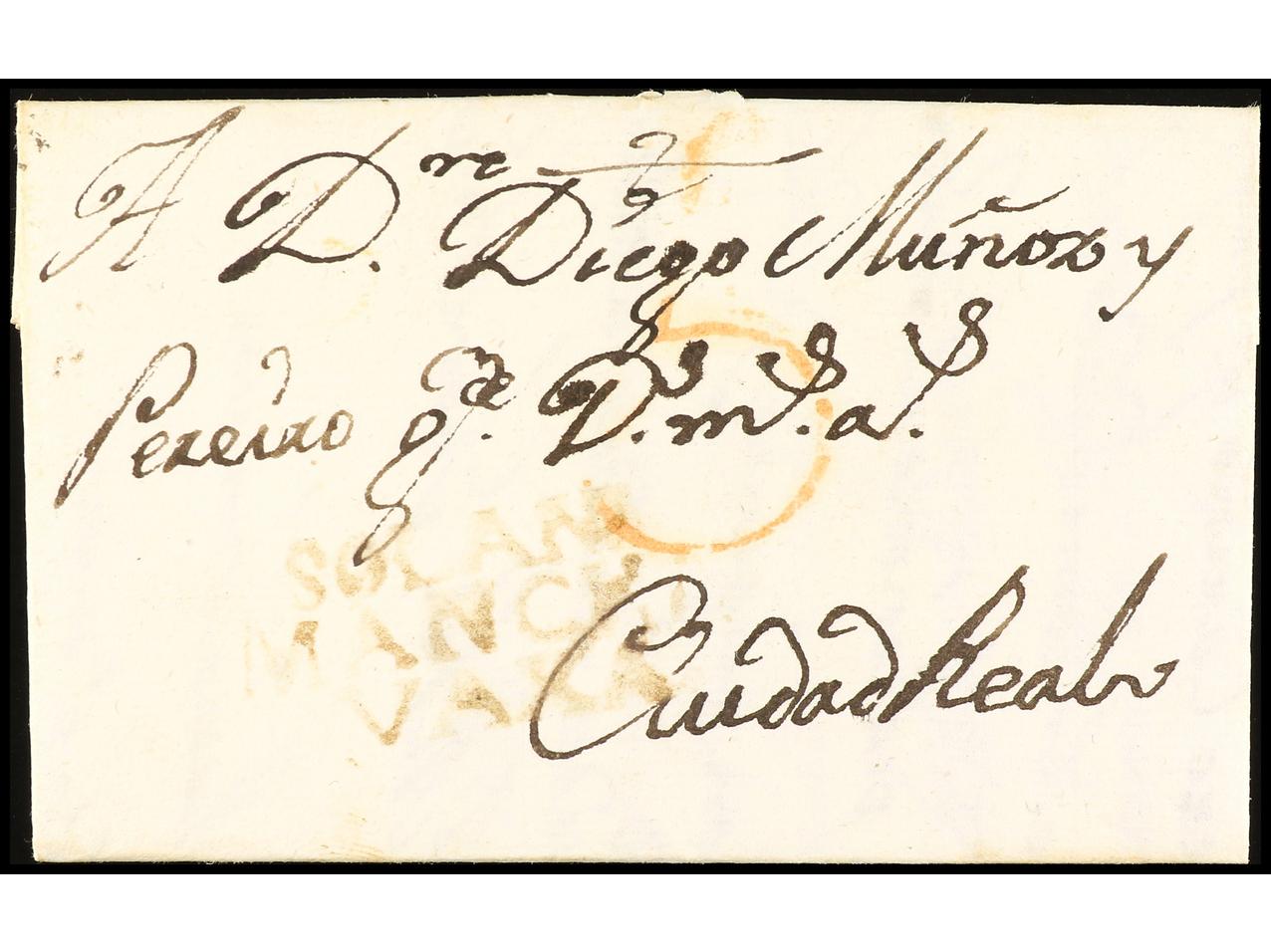 ESPAÑA: PREFILATELIA. 1808. SOLANA. Marca SOLANA/MANCHA/VAXA (nº 1) en negro, en tinta de escribir. MUY BONITA. (Image1) (Image2)