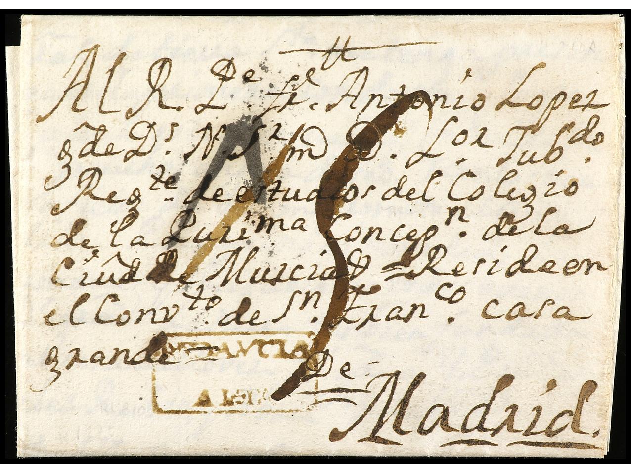 ESPAÑA: PREFILATELIA. 1775 (8 abril). VELEZ - RUBIO. Sobrescrito de VELEZ - RUBIO (Almería) a MADRID. Marca de tinta de escribir ANDALVCIA/ALTA. No catalogada. Gran calidad y extrema rareza. Marca de referencia. (Image1) (Image2)
