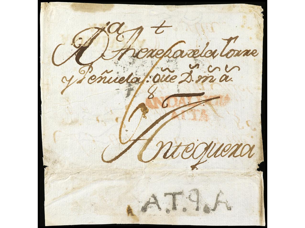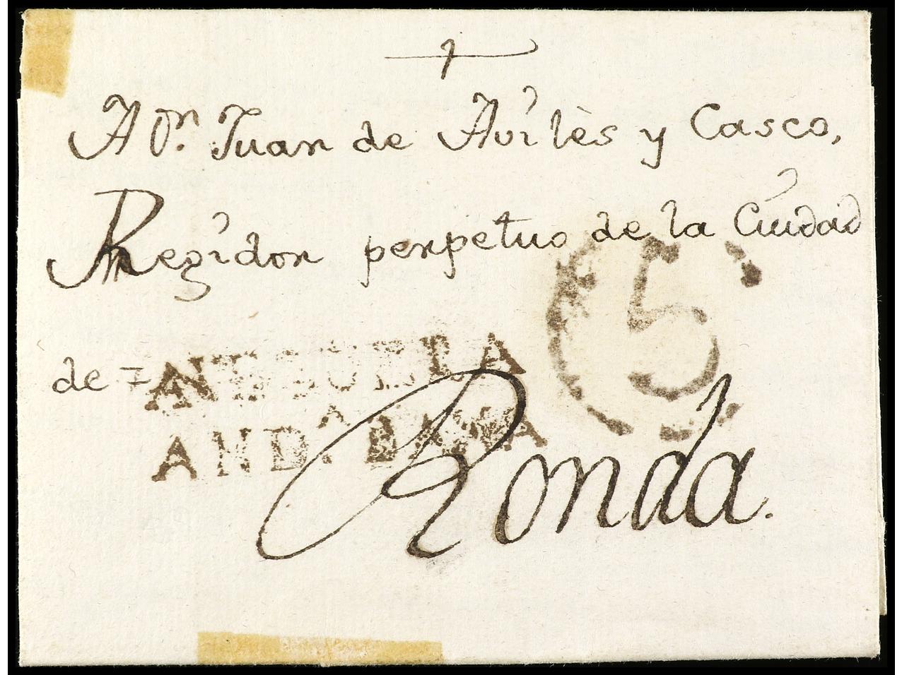 ESPAÑA: PREFILATELIA. 1799. ANTEQUERA. Sobrescrito a RONDA. Marca en tinta de escribir ANTEQUERA/ANDABAXA. NO CATALOGADA. Sólo esiste con ´ALTA´. EXTREMA RAREZA. (Image1) (Image2)