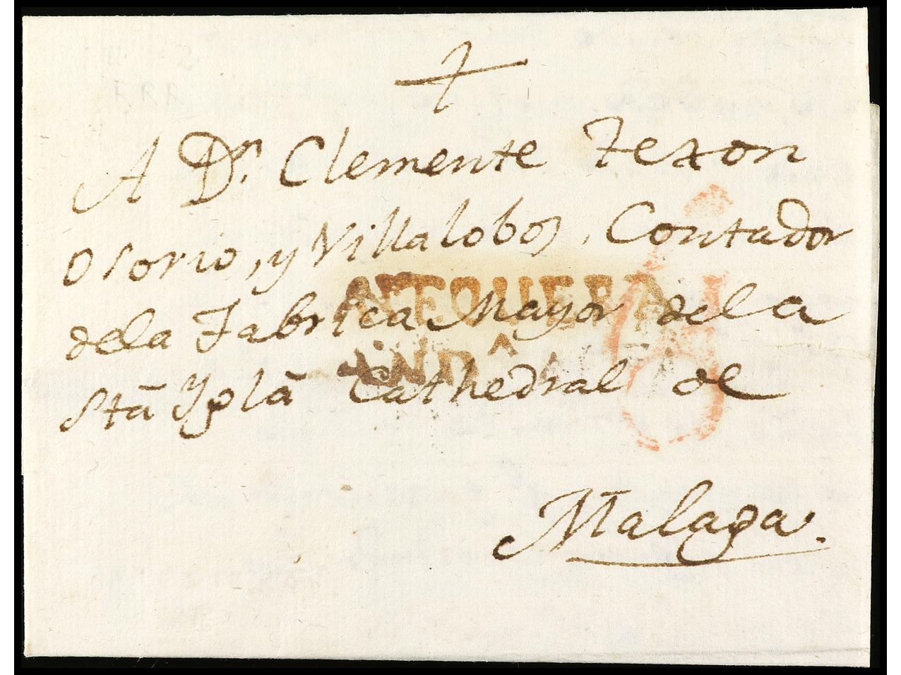 ESPAÑA: PREFILATELIA. 1816. ANTEQUERA. Sobrescrito a MALAGA. Marca en rojo ANTEQUERA/ANDA (P.E. 2). ALTA. Preciosa y rara. (Image1) (Image2)