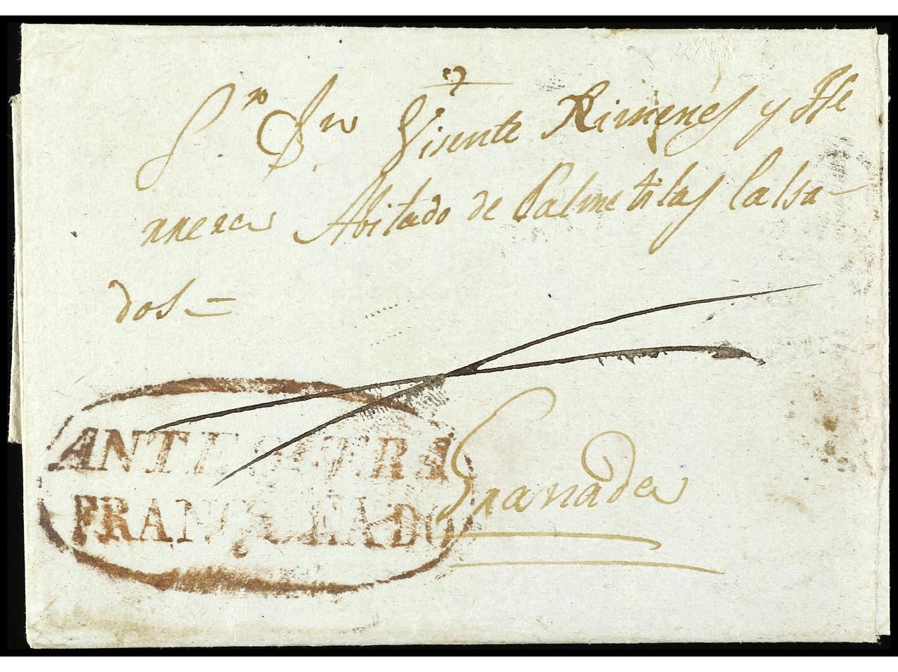 ESPAÑA: PREFILATELIA. 1836. ANTEQUERA. Sobrescrito a GRANADA. Marca ANTEQUERA/FRANQUEADO (P.E. 7) en rojo. (Image1) (Image2)