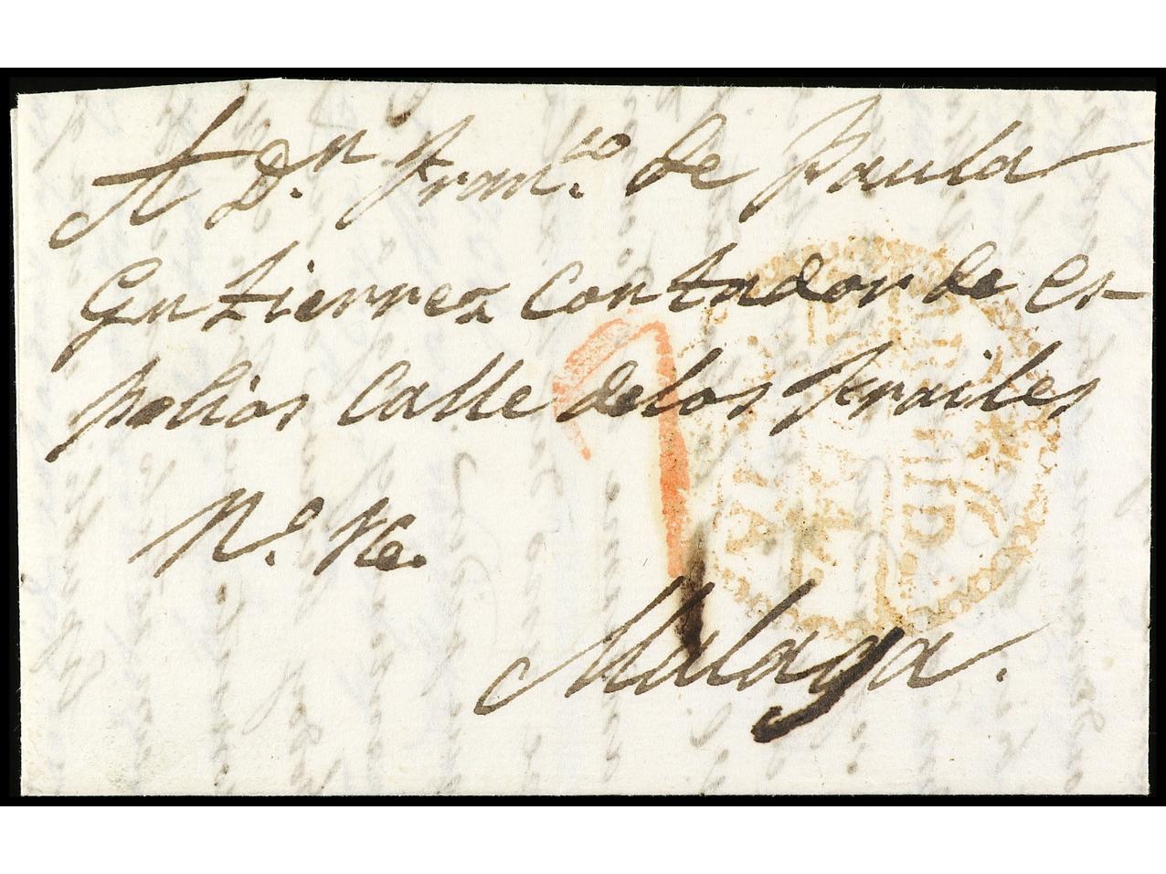 ESPAÑA: PREFILATELIA. 1832 (4 abril). ARCHIDONA. Sobrescrito a MALAGA. Marca en rojo ARCHID/AN-AL/ALTA (P.E. 1) dentro de orla. PRECIOSA y RARÍSIMA (cxt.).