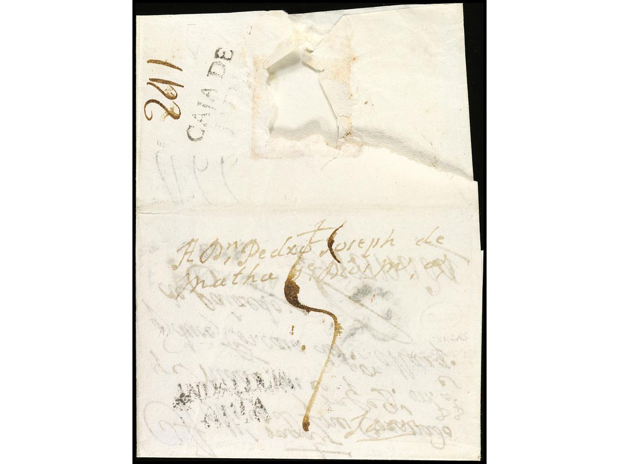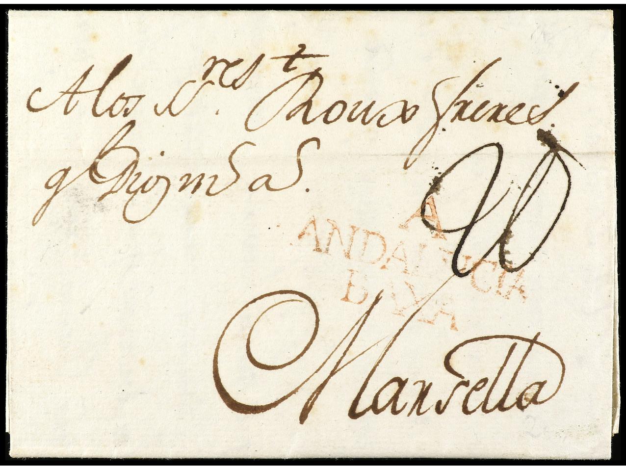 ESPAÑA: PREFILATELIA. 1779. ALMERIA. Sobrescrito a MARSELLA. Marca A/ANDALUCIA/BAXA (P.E. 4) en rojo. PRECIOSA. (Image1) (Image2)