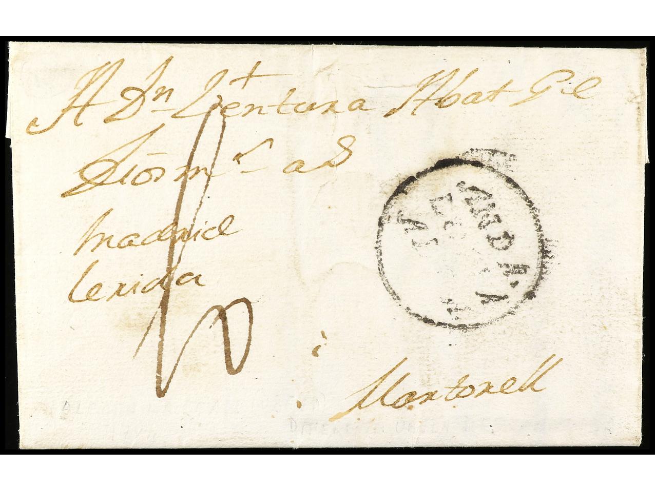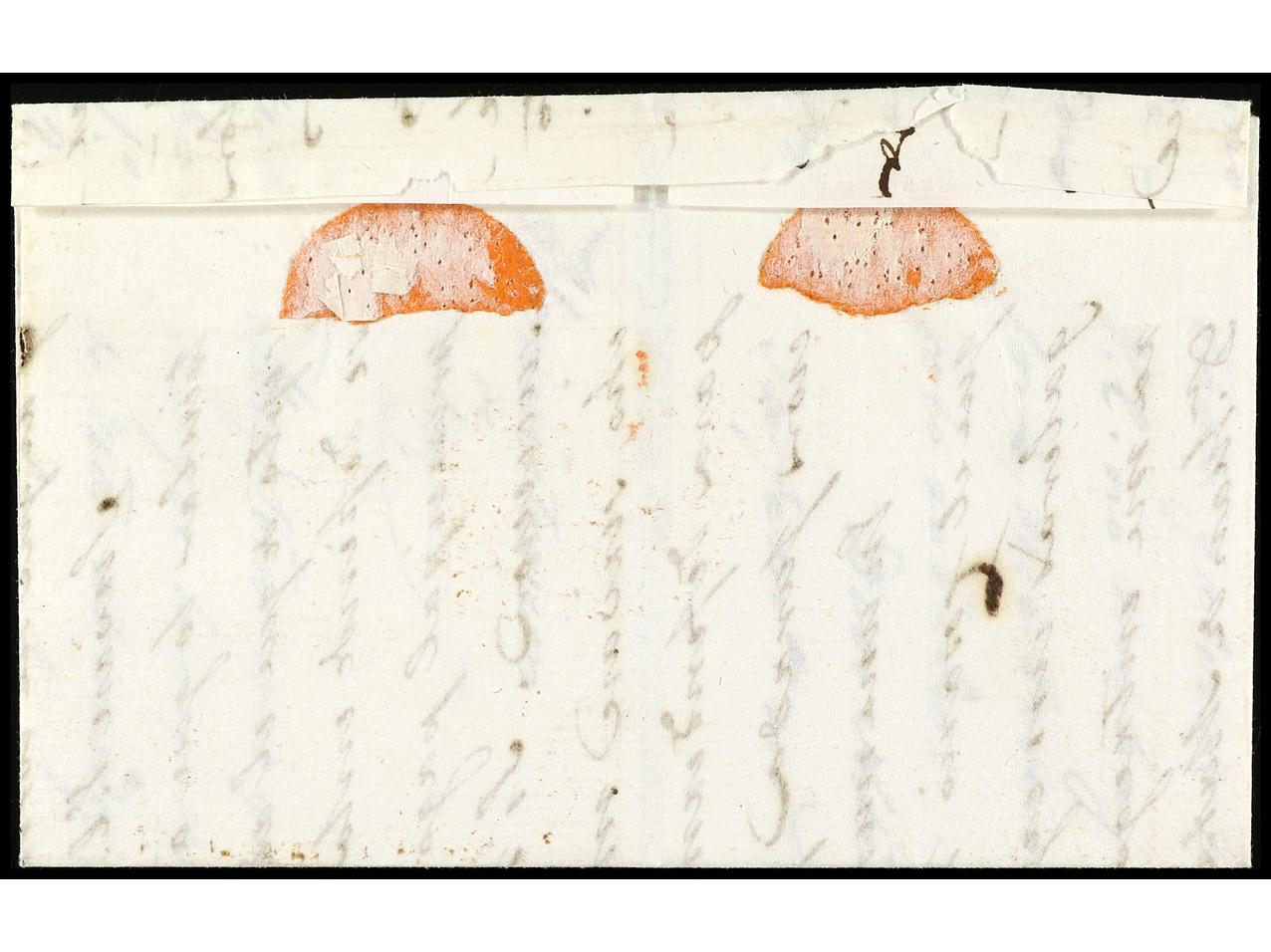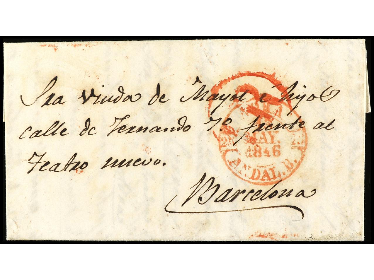 ESPAÑA: PREFILATELIA. 1846. ADRA. BARCELONA. Fechador ADRA (P.E. 2) en rojo. (Image1) (Image2)