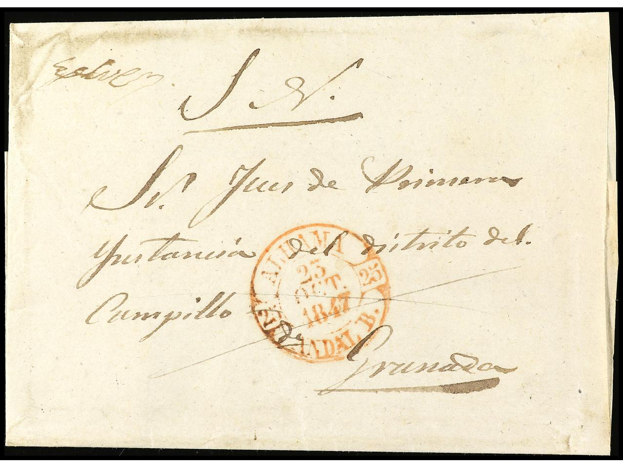 ESPAÑA: PREFILATELIA. 1847. ALHAMA. Envuelta a GRANADA. Fechador ALHAMA (P.E. 4) en rojo. (Image1) (Image2)