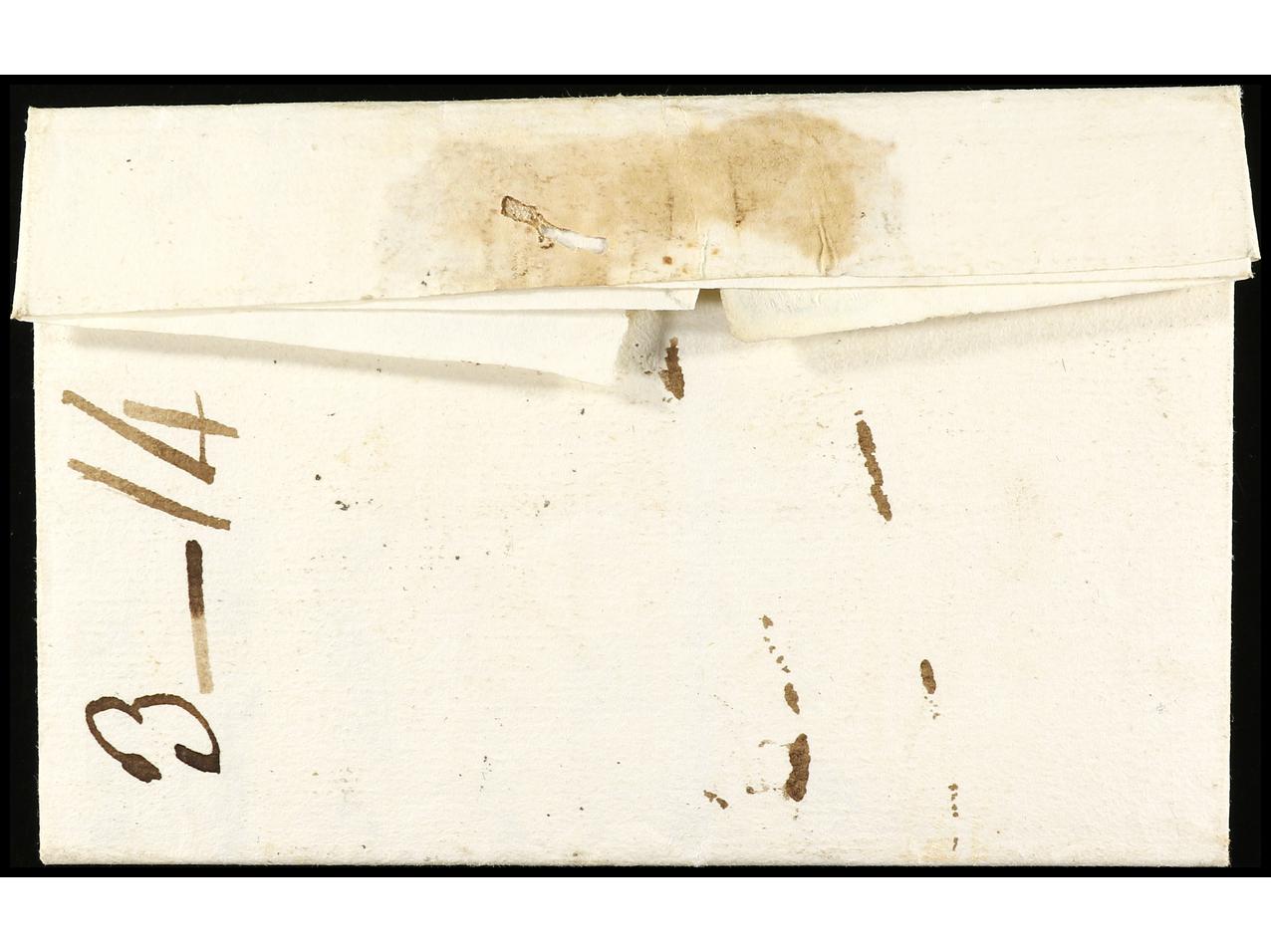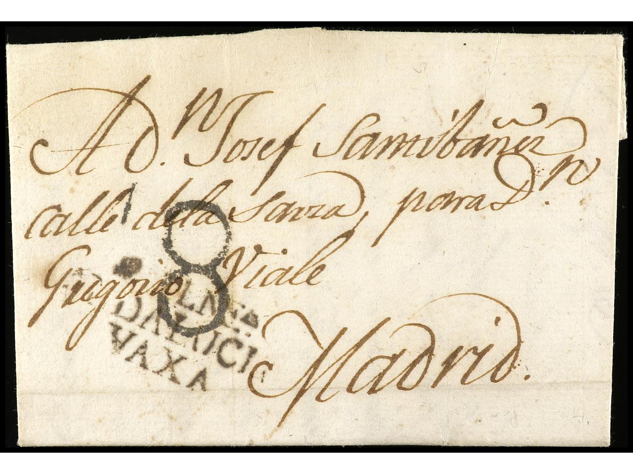 ESPAÑA: PREFILATELIA. 1814. Sobrescrito a MADRID. Marca ALMEA/ANDALUCIA/VAXA (P.E. 6) en negro. Perfecta estampación y MUY RARA. (Image1) (Image2)