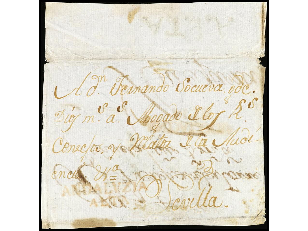 ESPAÑA: PREFILATELIA. 1782. ALGECIRAS. Sobrescrito a MAHON. Marca en negro ANDALUCIA/BAXA (P.E. 1). RARA. (Image1) (Image2)