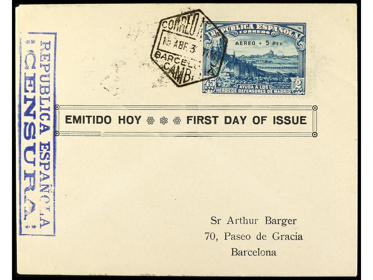 ESPAÑA. 1938. Aéreo + 5 pts. en Sobre Primer Día. Dictamen GRAUS. Ed.759. Cat. 190€. (Image1) (Image2)